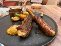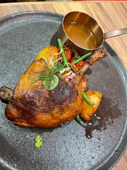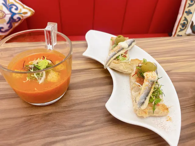 星期六下晝,嚟咗呢度食晏。環境好舒服,人唔多。寧靜傾偈的好地方。我哋揀咗套餐。西班牙蝦凍湯,清新!拼盤~ 如果多啲ham嘅款式多啲會更好。生熟恰到好處,呢個唔錯。呢個油鴨髀就有點一般。整體嚟講環境舒適,服務都很不錯。食物就中規中矩。星期六下晝,都人流不多,生意難做。人均消費$330。