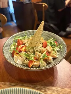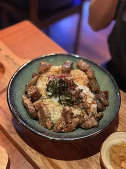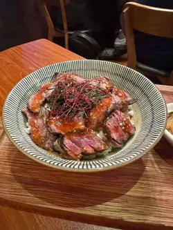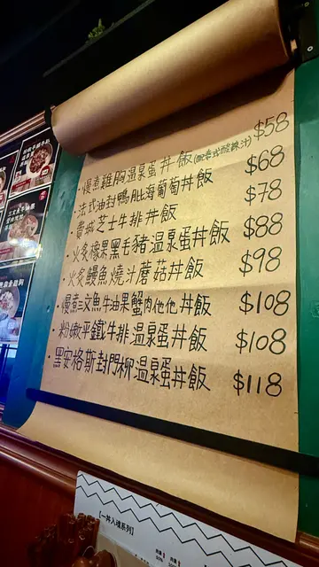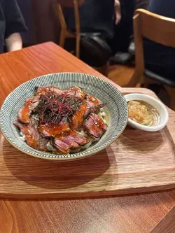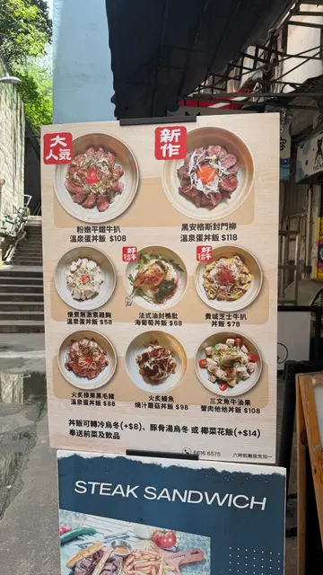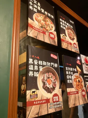 餐廳座位不多,非常昏暗,照片上的比看到的實物更光亮,桌子和餐具都有薄薄的油,午市開始不久店裡店外都已經有烤油味,入座位置在出餐口外,瞟見布簾后的廚房應該非常狹小。有些小餐店好細間,好應聲,這家還好,只要附近客人講話聲音不大,傾下計都合適。相對廚房大小和人手,出餐速度還算快,大約等了10-15分鐘。點了熱綠茶和熱白桃茶,都是茶包。白桃茶的白桃香氣聞是挺強烈,就是桃的香精,但喝下去沒那麼濃,只喝到白桃的甜,喝不出茶葉味,熱的白桃水還是清淡的,勉強解掉重口食物,桃香不會搶食物味道。芝士和黑椒、牛肉好碎,質地偏硬,少部分是焦脆,搭配芝士和黑椒汁的牛肉味道很像麥當勞安格斯漢堡。白飯有點像珍珠米,煙韌可是飯香欠奉。整個餐的份量不少,男生夠吃,女生應該有點飽。芝士汁、黑椒、肉量跟飯量均稱,可以一羹接一羹咁食芝士牛肉飯,牛肉有硬有脆,有點不一樣的口感,芝士汁也可以拌飯吃,但吃到一半實在有點單調,好在餐點有配海蜇,海蜇的酸辣中和了芝士的膩感。同行家人點了油封鴨腿飯,鴨腿肉質有彈性算嫩滑,鴨皮很薄不油,但好鹹,部分位置胡椒太多更鹹,印象中比上次吃的鴨腿飯鹹太多,雖然鴨腿質素保持,但烹調技巧似乎退步,這次就有點扣分了。想簡單食餐午飯充電的,牛排飯可以的。…查看更多