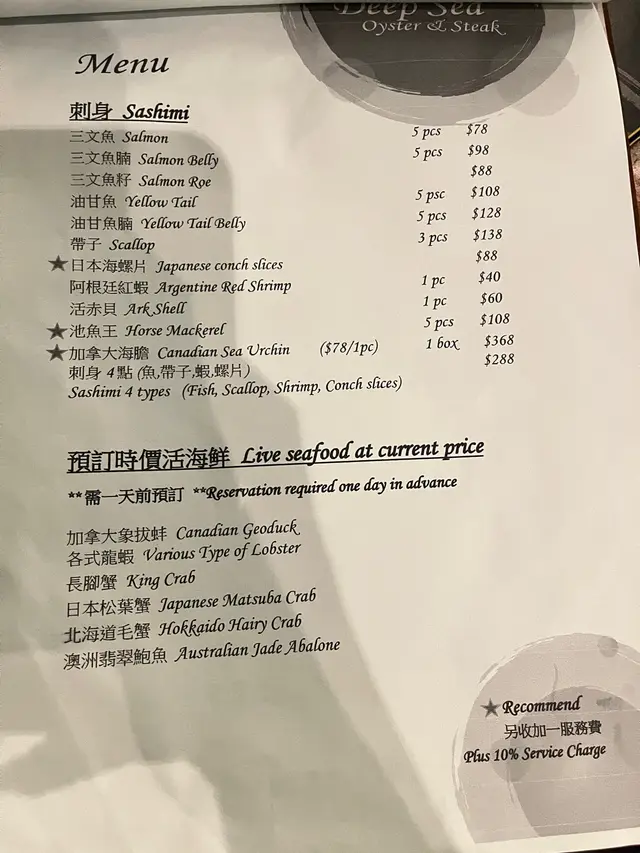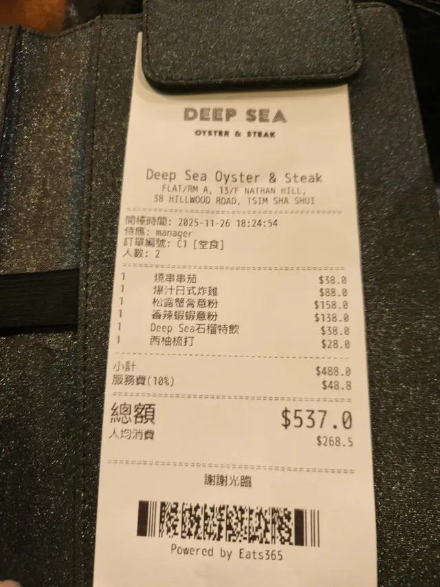 Deep Sea Oyster & Steak (尖沙咀) 網上訂座享低至7折優惠兼賺Rice Dollars 網址: https://s.openrice.com/QrbS07XOB00 地址: 香港尖沙咀山林道38號銀座38 13樓A號舖 電話: +852 98793921