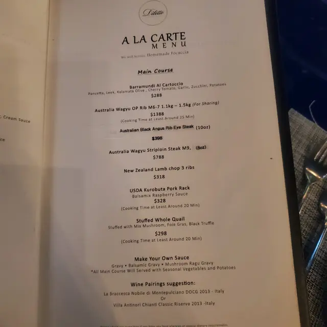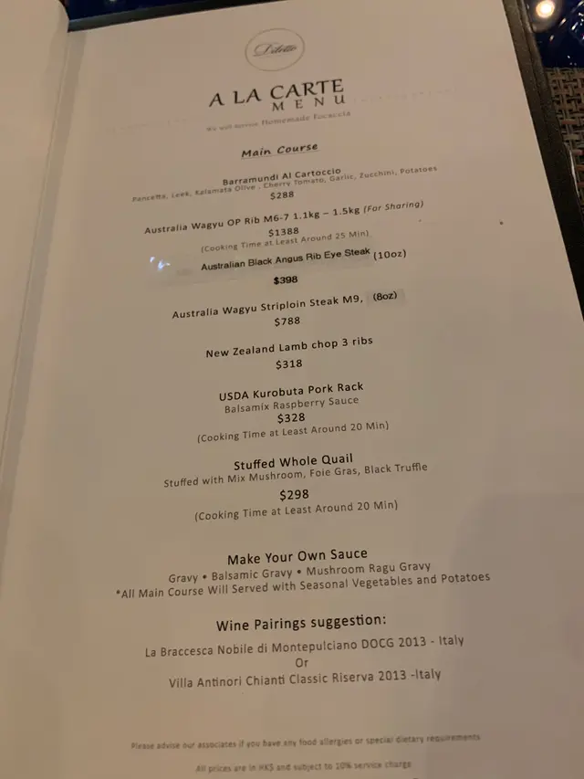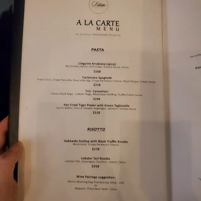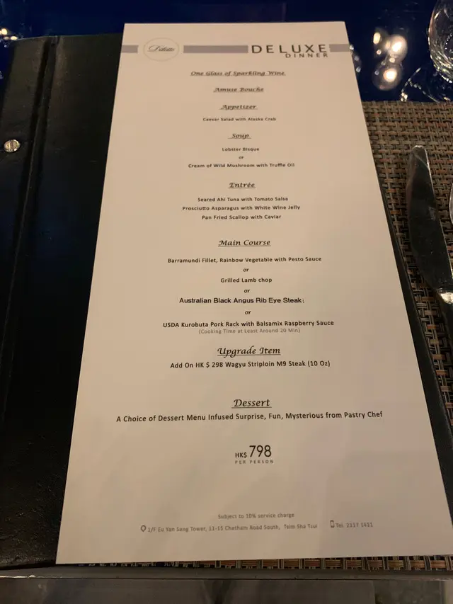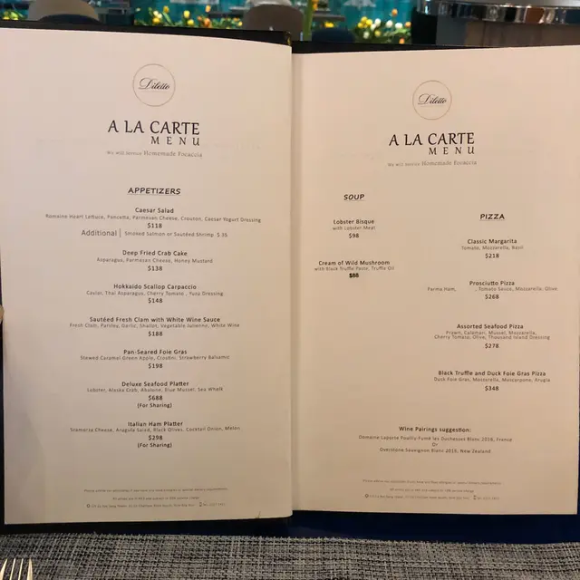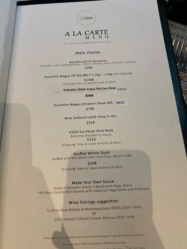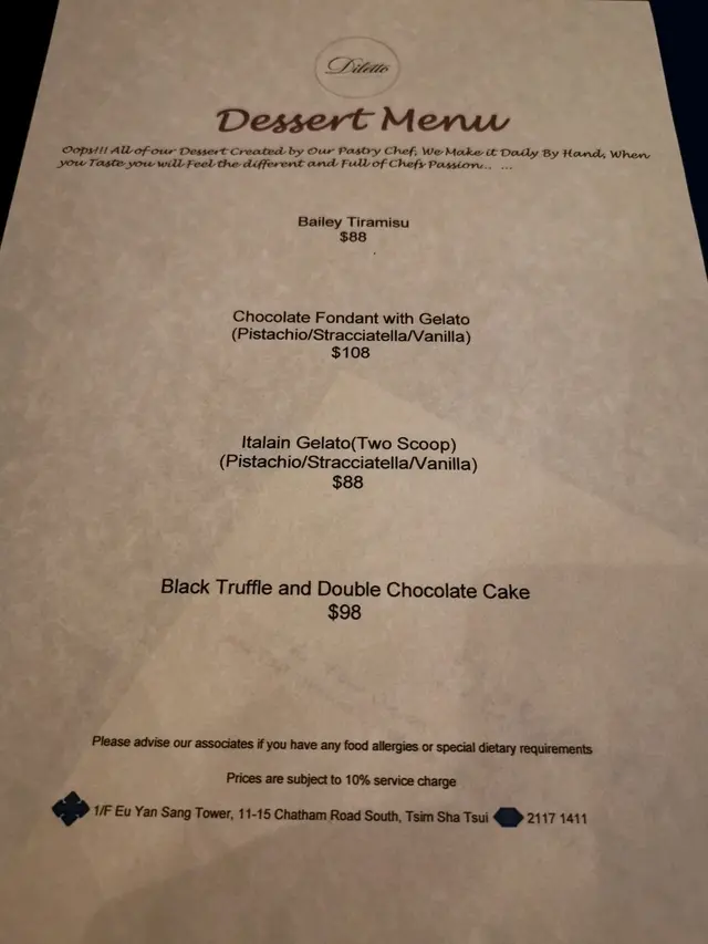 Diletto (尖沙咀) 網址: https://s.openrice.com/QrbS0vVS700 地址: 香港尖沙咀漆咸道南11-15號余仁生中心1樓 電話: +852 21171411