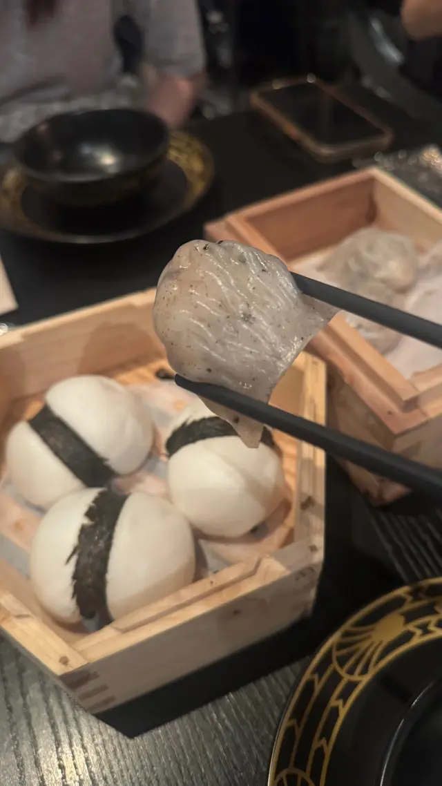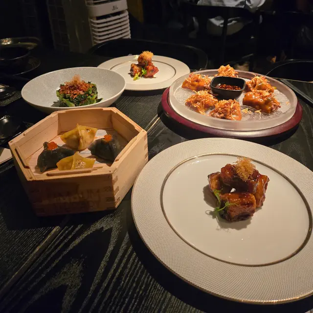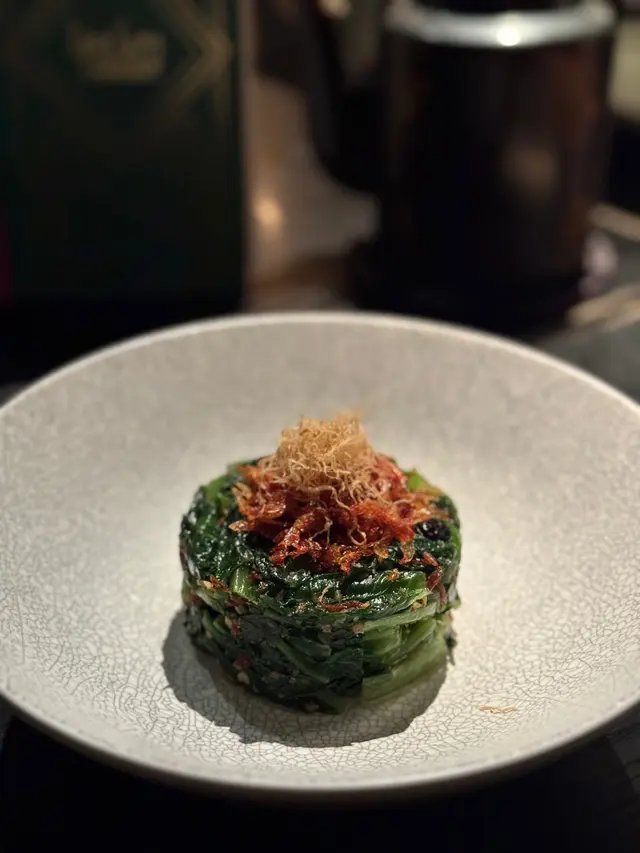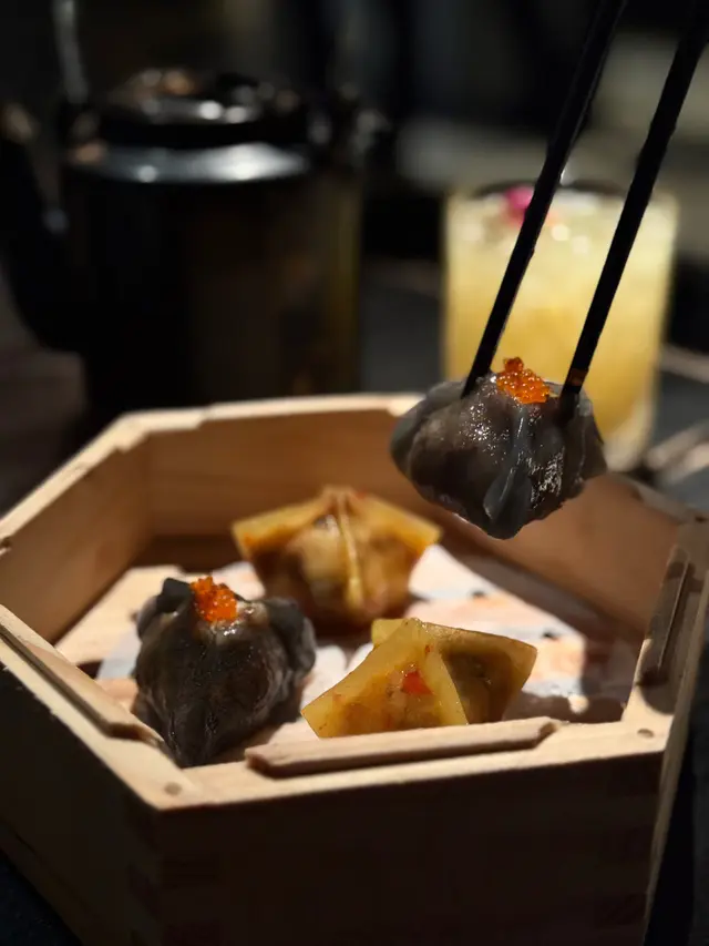 ᴅɪᴍ ꜱᴜᴍ ʟɪʙʀᴀʀʏ 主打少鹽少糖的新派點心和粵菜。餐廳裝潢以黑色為主調,融合現代與法式典雅風格,營造時尚優雅的用餐氛圍。特別值得一提的是,餐廳內以精緻的雀籠作為裝飾元素,懸掛於空間中,為環境增添了一抹中式復古情懷,與現代設計形成有趣對比,令人印象深刻。ᴄᴏʟᴅ ᴀᴘᴘᴇᴛɪᴢᴇʀ⟣ 豆豉鯪魚醬拌香麥菜 $𝟣𝟥𝟪以爽脆清甜的香麥菜 搭配鹹香的豆豉鯪魚醬 菜的清甜與豆豉的鹹香平衡 味道令人胃口大開!視覺上以簡單清新的擺盤呈現 亦增添食慾🤤ꜱɪɢɴᴀᴛᴜʀᴇ ᴅɪᴍ ꜱᴜᴍ⟣ 香椿菜蝦餃 $𝟤𝟪/件⟣ 順德黃皮老虎斑餃 $𝟥𝟢/件點心賣相精美 餃皮薄透煙韌 風味獨特 展現高級點心的水準 值得一試!蝦餃的蝦肉彈牙鮮甜 香椿的獨特清香滲入餡料 口感層次豐富 每一口都能感受到食材上的用心~ 另一款點心以黃皮老虎斑作餡料 魚肉鮮嫩細膩 與餃皮的軟滑口感相得益彰。⟣ 秘製牛肉腸 $𝟫𝟤腸粉皮薄滑 牛肉碎選材優質 肉質香嫩 牛肉腸粉以秘製醬汁為亮點 醬汁味道濃郁(微辣?)卻不搶味 與牛肉腸粉的搭配恰到好處。ᴍᴀɪɴ⟣ 怪味鱈魚 $𝟣𝟥𝟦/份鱈魚的調味獨特 帶有酸甜香辣的「怪味」特色(✯◡✯) 鱈魚肉質滑嫩 入口帶有輕微脆感 味道酸甜與微辣交織 令人驚喜!⟣ 花膠撈麵 $𝟣𝟤𝟪/份花膠撈麵亦是一道驚喜之作!麵條爽滑彈牙 掛滿花膠鮮香濃稠的湯汁 滿滿膠質 口感豐富!ᴅᴇꜱꜱᴇʀᴛ⟣ 茉莉咖啡千層凍 $𝟦𝟦千層凍將茉莉花茶的清香與咖啡的苦韻完美結合,口感柔滑,甜度適中,適合喜愛清爽甜品的食客,是完美的餐後結尾(¯ ³¯)♡ᴄᴏᴄᴋᴛᴀɪʟꜱ⟣ 𝟣𝟥 ᴛɪʟᴇꜱ $𝟣𝟣𝟧⟣ ꜱʜᴇɴɢ ᴊɪᴀɴɢ $𝟣𝟢𝟢餐廳有很多ᴄᴏᴄᴋᴛᴀɪʟꜱ選擇𝟣𝟥 ᴛɪʟᴇꜱ口感酸甜清爽 水果香與ʜᴇɴɴᴇꜱꜱᴇʏ ᴄᴏɢɴᴀᴄ的醇厚平衡 搭配點心享用 很不錯~ ꜱʜᴇɴɢ ᴊɪᴀɴɢ口感清新中帶有微辣的薑味 口感層次豐富 既有創意又提神解膩 好適合炎炎夏日飲用~ …查看更多
