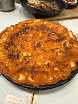 同朋友途經觀塘新商場,見到新嘅韓國餐廳就試下,叫咗幾款經典韓菜。先講個韓式蒸蛋,上枱仲冒緊煙,質感超級嫩滑,好似布甸咁,入口有蛋香,加埋少少蔥花,簡單但好正。跟住係泡菜豆腐鍋,湯底酸辣惹味,熱辣辣好開胃,入面有豆腐、蛋同海鮮,飲一啖即刻醒神晒。另外仲叫咗五花肉鐵板燒,煎得金黃香脆,肥瘦比例啱啱好,唔會太膩,加埋洋蔥一齊食,更加香口。泡菜煎餅就外脆內軟,泡菜酸香同麵糊融合得幾好,啖啖都夠味。重頭戲一定係泡菜豬肋煲,大大條泡菜舖喺面,配埋炆到腍滑嘅豬肋骨,湯底濃郁又帶微辣,幾個人share一煲真係滿足。當然唔少得韓式炸雞,我哋叫咗兩款,一款係黃金炸雞,外皮香脆,肉質多汁;另一款淋上青綠色醬汁(應該係山葵或芥末味),味道特別得嚟又帶啲刺激感,幾有驚喜。整體嚟講,呢度環境企理,食物選擇多,味道正宗,價錢人均百幾蚊,算係抵食之選。下次再嚟,可能會試埋海鮮鍋或者辣炒年糕。…查看更多