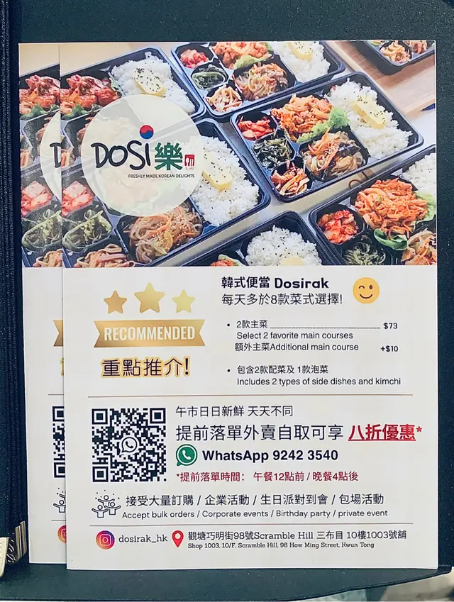 Dosi樂 (觀塘) 網上訂座享低至65折優惠兼賺Rice Dollars 網址: https://s.openrice.com/QrbS0vo8F00 地址: 香港觀塘巧明街98號The Millennity 10樓1003號舖 電話: +852 92423540