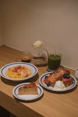 《半山文青cafe☕️》———————————————-#DoubleBlack 🖤-早排同朋友行上SOHO,沿着扶手電梯上半山,發現呢間文青Cafe小店,裝修簡約舒適😍-🇹🇭 Tom Yum Cream Spaghetti With ShrimpsTom Yum奶油意粉真係好特別,意粉煮得啱啱好,好有層次感!蝦都係新鮮,食落去彈牙,整體味道既有酸又有辣,唔會太膩,真係好好味🤤-🍔 Smash Burger牛肉外脆內嫩,比起一般漢堡更有咬口,再加上生菜同特製醬,啖啖都有驚喜,份量十足,會搭埋炸薯條一齊食,非常之夾🍟-💚 Matcha Yuzu Soda抹茶味濃郁,但又唔會太苦,配合柚子嘅清香,嚟一口即刻精神倍增,非常好飲🤘-☕️ Hojicha Latte焙茶嘅香味好濃,奶泡打得好細緻,牛奶混合之後更加順滑,唔會太甜,亦聞到濃郁嘅咖啡香氣,略帶回甘😚-🍰 Lemon Weekend 蛋糕鬆軟,檸檬味清新🍋唔會太酸,呢一餐寫上完美嘅句號~-⭐ 參考價錢︰Tom Yum Cream Spaghetti With Shrimps:$118Smash Burger:$128Matcha Yuzu Soda:$65Hojicha Latte:$50Lemon Weekend:$48🍌 抵deal 指數:7/10…查看更多