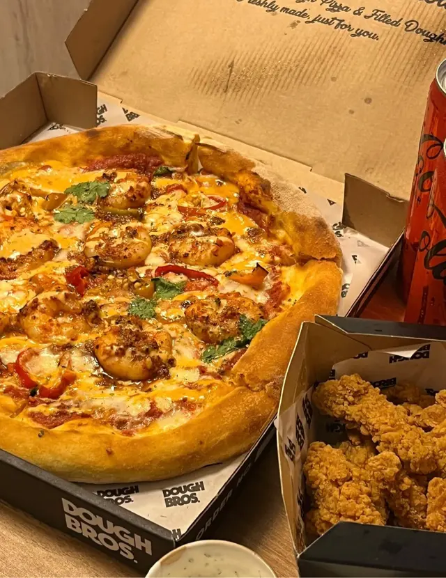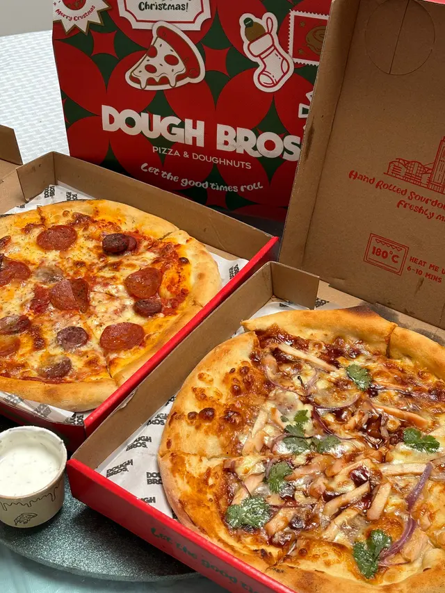 因為細佬推介😂 我先知道有doughbro🆘 平時經過見到好多分店都冇留意到🥲 佢啲pizza食過一次返唔到轉頭!暫時係我心目中第一🆘 所有食材即叫即整,勁新鮮呀😭 完全唔係急凍個種😌 試左佢個The red king 紅千島蝦王薄餅🍕 海鮮控表示超滿意😍 底醬辣辣地非常惹味!仲有巨量蝦肉🦐 好正呀~ 餅底好煙韌!平時唔食餅邊,但doughbro手工制口感非常好,全部食晒🤣 佢最特別嘅係有勁多醬可以揀!不過自己最鍾意嘅係個招牌蒜蓉及香草醬!真係淡淡都勁濃郁😙😙另外我發現佢有唔同size可以揀,亦都有一人餐!下次放工可以買舊返屋企食❣️佢除咗Pizza之外,仲有爆醬冬甩,等我下次再試吓先有啲邪惡😌😌😌個朱古力冬甩望落去好似好正🙈🙈…查看更多