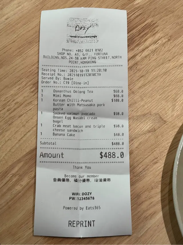 今日去咗北角呢間超有質感嘅café,小編試咗幾款招牌美食,每樣都有驚喜~桂花烏龍茶 Osmanthus Oolong Tea呢杯茶真係香到飛起~桂花嘅芬芳同烏龍茶嘅醇厚融合Mimi Momo焙茶控必試!用焙茶同咖啡調成嘅沙冰,加埋espresso真係濃郁到不得了!飲完成個口腔都係焙茶嘅香味韓式辣花生醬松阪豬意粉意粉真係創意滿分。韓式辣醬微辣配花生醬嘅香,仲有花生碎增加咬口,松阪豬肉質爽口彈牙,辛辣中帶甜煙三文魚牛油果溫泉蛋芥末忌廉Bagel外脆內軟嘅bagel配秘製芥末忌廉醬,辣辣甜甜好開胃。牛油果嘅creamy配煙三文魚嘅鹹香,溫泉蛋一爆漿更加豐富蟹肉煙肉三重芝士三文治剛出爐嘅飛碟三文治香氣撲鼻,外層脆卜卜!入面嘅蟹肉煙肉醬配三重芝士,濃郁香滑,側邊嘅沙律增加清爽感香蕉蛋糕甜品收尾!蛋糕鬆軟,香蕉味十足,甜度適中唔會膩,配杯咖啡就係perfect endingDozy食物有心思,環境舒適,係北角hidden gem!下次經過記住去試吓啦~…查看更多