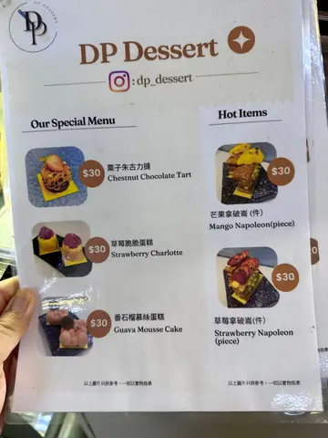 DP Dessert的芒果拿破崙芒果拿破崙的味道不錯, 果然是皇牌。這是一道美味的法式甜點,結合了酥脆的千層酥皮和新鮮的芒果,口感豐富, 非常搭配。要做得好吃並不容易, 要餡料﹑酥皮和芒果同時配合, 這裡做得挺好的。首先酥皮很有層次, 吃得出一層又一層, 而不是疊在一起無層次的硬磚, 吃出它十分酥脆, 入口即化, 不用咬, 非常成功做到輕而脆的效果, 相當出色。而且並沒有嚴重出水或變軟, 食得出是新鮮組合或組合後不久的, 很不錯。餡料香甜可口, 跟酥皮的牛油香味很配, 再加了香甜而不酸的芒果, 非常可口。…查看更多