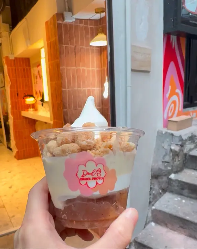 健康乳酪雪糕店Drool Froyo🍦 中環限定威士忌蘋果脆🍎打卡免費送Croffle!😆身為乳酪雪糕控,今次專登走咗去📍中環Drool Froyo試佢哋嘅乳酪雪糕!口感真係冇得彈,輕盈綿密,酸甜比例啱啱好,食完成杯都唔會覺得滯🤤中環店限定有好多酒味嘅雪糕選擇,今次揀咗「威士忌蘋果脆」舀落去已經聞到陣陣酒香。佢哋個威士忌🥃焦糖忌廉醬香濃幼滑,焦糖嘅甜完美中和咗威士忌嘅烈,剩返陣陣醇香。再配埋清甜嘅肉桂蘋果粒同脆口嘅蘋果脆脆,三種唔同口感同味道,層次豐富~不過我個人最鍾意都係 「黃金寶」!芒果🥭香甜多汁,最正係搭配咗煙韌嘅麻糬,同乳酪嘅軟滑形成強烈對比。面頭仲有杏仁脆脆就提供咗堅果香同脆口感覺,再淋上天然嘅野生蜜糖,帶出溫和嘅甜味,令成個組合又豐富又和諧,口感同味道都滿分!🤤🤤🤤🆓記住打卡免費換Croffle!😍揀咗 「酸甜可口雙莓」,熱辣辣嘅牛角窩夫外脆內軟,配埋酸酸甜甜嘅雙莓醬同乳酪,冷熱交融嘅口感真係邪惡到極點!Drool Froyo絕對係必encore嘅健康甜品店🤤有得食,又有得打卡🥰狗狗仲可以免費食😍😍天后&中環店逢星期五/六日及公眾假期,都會開到凌晨12點🤩飲完酒仲可以食番杯雪糕🍦…查看更多