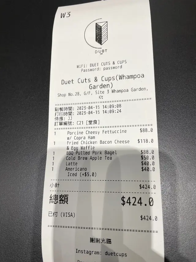 Duet Cuts & Cups (紅磡) 網上訂座即賺Rice Dollars 網址: https://s.openrice.com/QrbS0ZliA00 地址: 香港紅磡黃埔天地百寶坊(第3期)地下G28號舖 電話: +852 34254945