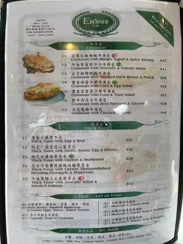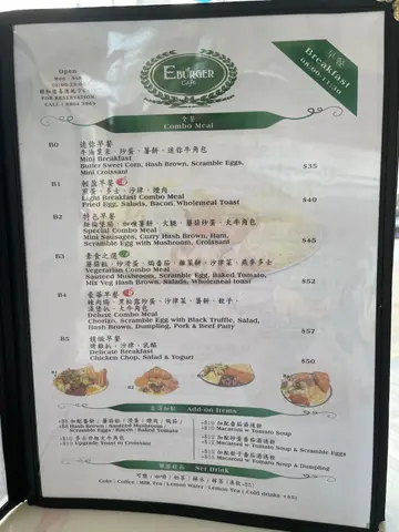 週末早上同朋友去咗聯和墟E Burger Cafe嘆早餐,每次嚟呢度都覺得好舒服,令人感到放鬆自在😌我揀咗特色早餐(紐倫堡腸、蘑菇炒蛋、火腿、咖喱薯餅、牛角包)⋯牛角包真係my favourite😍,熱辣辣好香口,咬落好鬆軟唔會靭;咖喱薯餅都好好味,好少喺一般Cafe食到朋友揀咗份量十足嘅豪華早餐,黑松露炒蛋炒得好嫩滑,仲有漢堡扒、辣肉腸、薯餅、餃子同埋牛角包,啱晒本身係餓底嘅朋友😆配料仲有沙律菜可以refresh一下😋完美嘅句號由熱咖啡和熱檸茶終結😌不過好可惜呢間餐廳快要結業,餐廳喺艱辛嘅疫情情況下仍然堅持經營,真係好多謝店主同埋伙記們為粉嶺街坊服務,希望有緣再會,多多保重👋👋…查看更多
