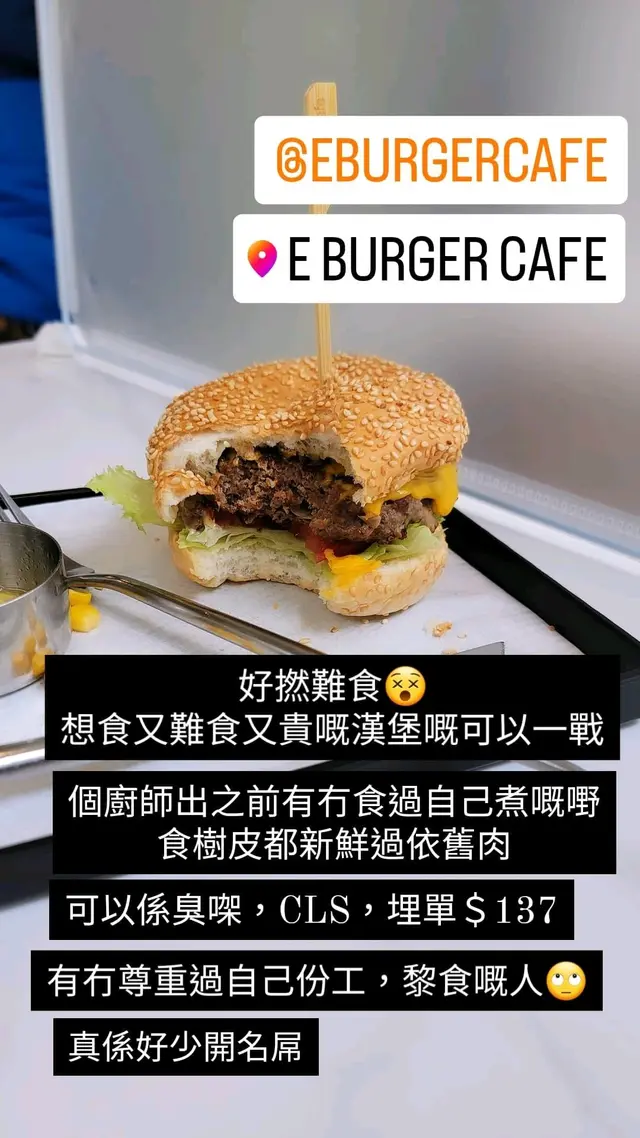 E Burger Cafe (聯和墟) (粉嶺) 網址: https://s.openrice.com/QrbS0XeeA00 地址: 香港粉嶺聯和墟和豐街28號囍逸地下G07B號舖 電話: +852 68043869