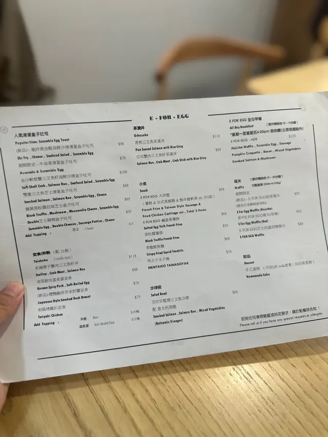 E FOR EGG (大圍) 網上訂座即賺Rice Dollars 網址: https://s.openrice.com/QrbS07yC500 地址: 香港大圍城河道19-25號城河樓地舖 電話: +852 53470262