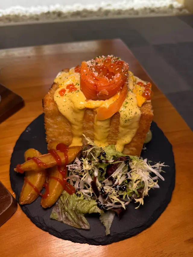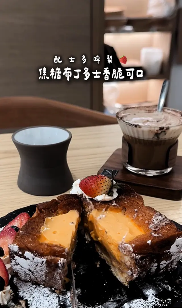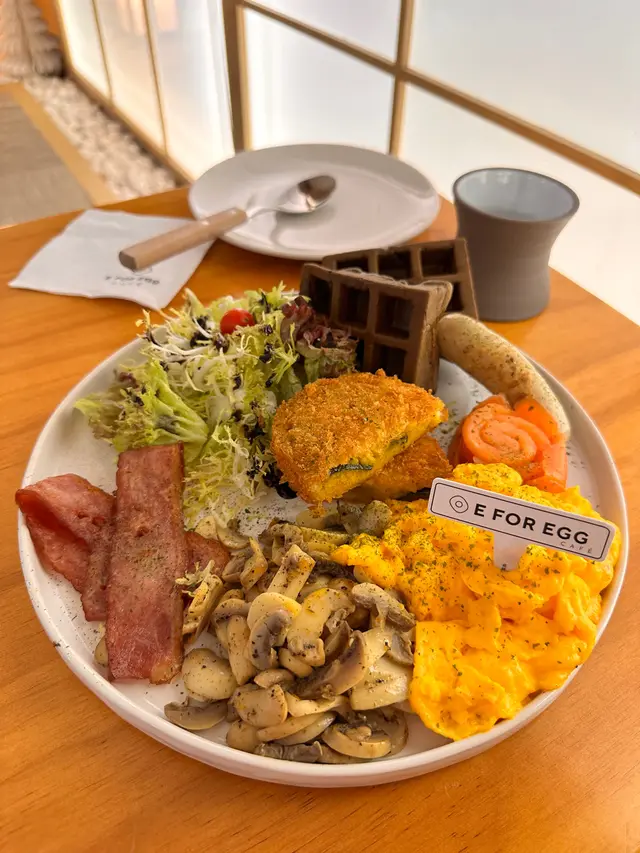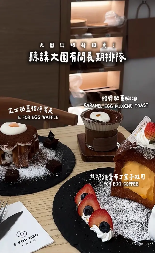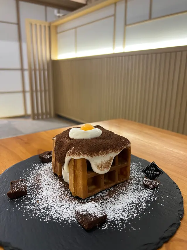 專程來到這間在大圍很有名氣,主打盒子吐司的餐廳〔E for Egg〕,開業多年在這區熱潮依然未有太多減退跡象,所以選擇了平日晚上時間到來,不用排隊。店內主打多款賣相精緻的盒子吐司,如: 〔黃金鳳尾蝦滑蛋盒子吐司〕等,而特色甜品有〔焙茶窩夫〕及特別飲品: 〔白桃烏龍〕、〔桂花烏龍〕及〔接木骨蘋果氣泡水〕等。餐廳以日系白色簡約設計為主,配上簡潔舒適的木系傢俱,而2樓樓上更有日式榻榻米地台坐位,打卡很美。【焦糖雞蛋布丁盒子】(HK$65)造型帶點日式可愛的布丁盒子,吐司很厚身,金黃色的外層焦脆,麵包鬆軟微甜,彈滑幼嫩而冰凍的布丁夾在厚吐司中,加上焦糖漿,口感非常夾。【開心果巴斯克芝士蛋糕】(HK$62)餐廳期間限定甜品,蛋糕烤得很好,微微焦香的外皮,中間是少少流心的開心果醬,入口蛋糕質感濕潤口感綿密,很喜歡這款濃郁的開心果味道的蛋糕,開心果控必試,推薦。【開心果特調】(HK$48)(左)杯邊圍了不少開心果碎,入口時提升了不少開心果的味道層次,入口味道濃郁,甜到恰到好處而不太甜膩,推薦。【招牌奶蓋咖啡(含酒精alcohol)】(HK$48)(右)店中特色飲品之一,杯上有很可愛的荷包蛋造型,咖啡入口味道非常香濃。 【英式全日早餐All Day Breakfast】(HK$128)色彩繽紛的全日早餐,有炒過的磨菇、香草腸、煙三文魚、沙律菜、炒蛋、煙肉、南瓜餅及培茶窩夫餅,十分豐富,而且有窩夫是特別的焙茶味道,鬆脆亦厚身,吃得飽之餘又不會太油膩。【日式牛肉定食配糖心蛋撈烏冬】(HK$95)日式薄切的肥牛很入味,而且份量很多,入口不鹹,配上熱騰騰的日本烏冬及糖心蛋,一大碗很飽肚。【明太子玉子燒】(HK$38)而且卷成一層一層的蛋皮口感很有層次,入口濕潤,而且玉子燒】上有滿滿的沙律醬及紫菜,很有口感。【香脆魷魚鬚】(HK$68)選用了魷魚鬚的部位,炸得不油膩,入口酥香脆口,香口小食就是最惹味。…查看更多