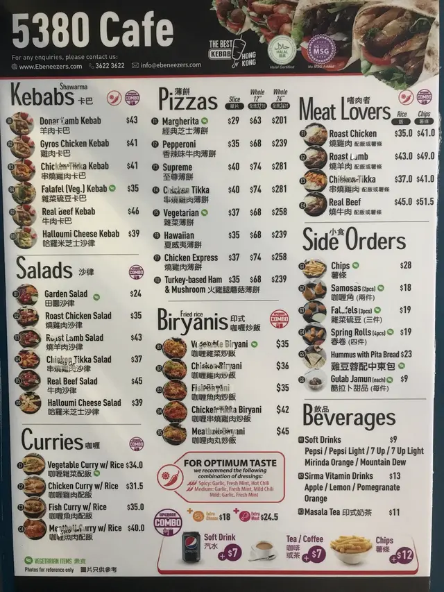 Ebeneezer's Kebabs & Pizzeria (香港城市大學) (九龍塘) 網址: https://s.openrice.com/QrbS0Hmy400 地址: 香港九龍塘達之路83號香港城市大學康樂樓5樓5013室5380 Cafe 電話: +852 23953155