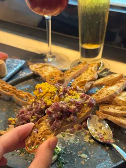 呢間最近好紅嘅西班牙菜小店我係唔會放過🙂↔️店舖位置唔多 好爆場🔥 小店真係特別用心💕我係西班牙菜獵人🤣 好想放大假去西班牙狂食tapas飲sangria 🥲❣️Ham Croquette $44@2炸得唔油膩🔥 充滿黑毛豬鹹香 內裏濃郁幼滑😋仲配咗沙律好有誠意🥗❣️Wagyu Beef Tartare $178Starters 必點和牛他他😛 擺盤好靚又大份✅和牛粒油花靚 食落好嫩又無筋 新鮮食得出🐮調味豐富‼️ 撈埋洋蔥🧅 pickles 🥒 蛋黃秘製醬汁同芝士碎 層次MAX👍🏻仲可以配牛油加上啲細蔥就更加smooth🧈多士脆到餅乾咁 俾左超多🤣 食咗我好耐先食得完😛❣️Garlic prawns $128蒜蓉好香 蝦新鮮🦐 點埋個麵包一流🥖 有少少辣更惹味🌶️❣️Seafood Paella $298海鮮飯鋪滿青口 大蝦同魷魚 🦐🦑 隻蝦好大好鮮甜彈牙✨飯粒吸左濃濃嘅海鮮鮮味 係啱啱收乾晒水仲有米粒嘅口感🥘 每啖都充滿海鮮嘅香氣 加少少檸檬汁已經perfecto~❣️Sangria/beer $88嘢食偏重味一定要送返杯酒🍷🍺🇪🇸…查看更多