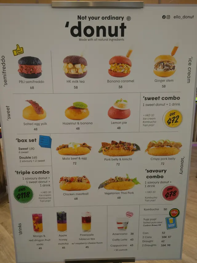 唔知幾時開始愛上左食冬甩🍩知道係尖沙咀K11 Art Mall開左Ello Donut就即刻去試下先😍我揀左一甜一咸donut同埋一杯飲品✌🏻個四川麻辣牛肉配溫泉蛋donut 辣度適中 好開胃 配埋個流心嘅溫泉蛋 簡直係無得彈😋至於甜donut 我揀左HK milk tea味 用氣炸鍋炸到個朱古力donut包脆一脆 加埋濃厚嘅港式奶茶雪糕 再配以粒粒多士及煉奶 一d都唔會太甜太膩🤤最後飲埋杯用真芒果同紅火龍果泥製成嘅芒果紅火龍果梳打 太滿足了吧😌📍地址:尖沙咀河內道18號K11 Art Mall B2樓中庭…查看更多