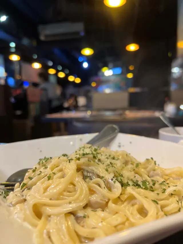 食物方面我覺得各方面都不錯,2人Set有:湯、沙津、田螺、意粉、Pizza.份量都幾多,個人最鍾意田螺同埋意粉,叫咗個卡邦尼,意粉炒得夠香同埋唔會太濕,個螺好甜