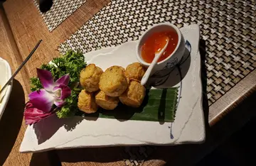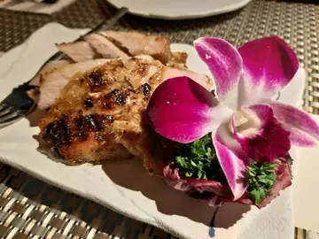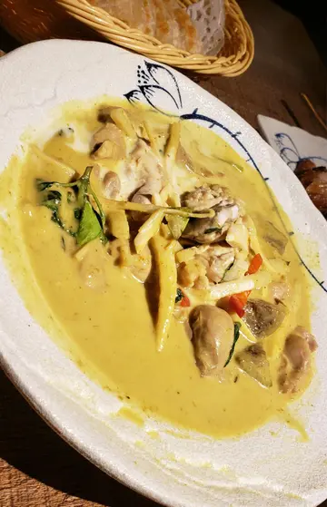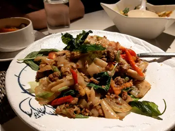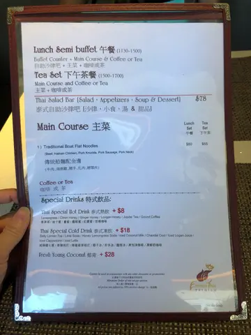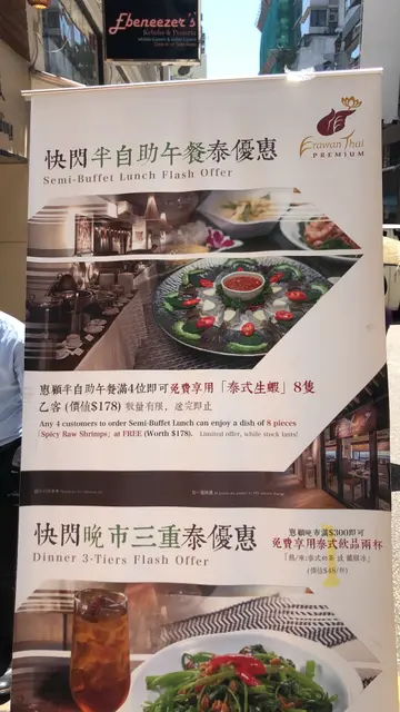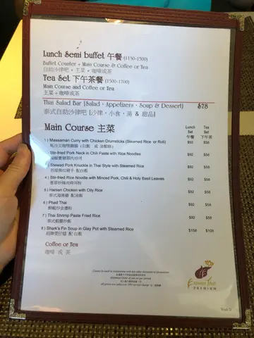 下班跟妹子想說在附近找家餐廳食個晚飯,但尖沙咀有太多連鎖店,我們想試小店,誤打誤撞找到這家泰菜。我們乘電梯到3樓要再走一層才到,還在想為什麼要這樣麻煩,原來它有露天座位,還有金燦燦的四面佛,感覺立即像離開了香港,很有泰國的感覺。我們選了室內座位,侍應們的服務態度亦很好,很有禮貌,而且用具都十分好看,還特地拍了照。食物質素亦出乎意料的好吃,這個燒豬頸肉,是我至今吃過最好吃的一個,而且配上在別處找不到的酸辣醬汁,那肉質,那口味,真是好吃得難忘。炒河跟冬陰功湯也是好吃的,只是一開始就被豬頸肉給驚喜了。…查看更多