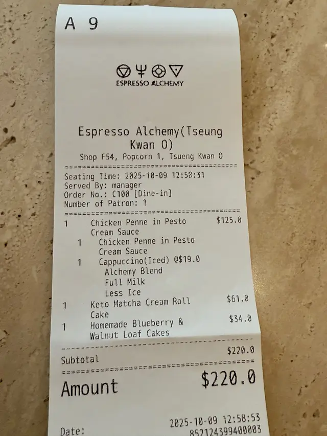Espresso Alchemy (PopCorn 1 ) (將軍澳) 網址: https://s.openrice.com/QrbS0t9WC00 地址: 香港將軍澳唐賢街9號PopCorn 1 1樓F54號舖 電話: +852 26181632