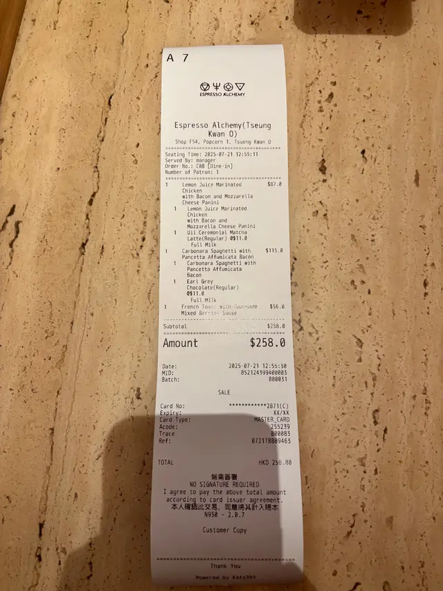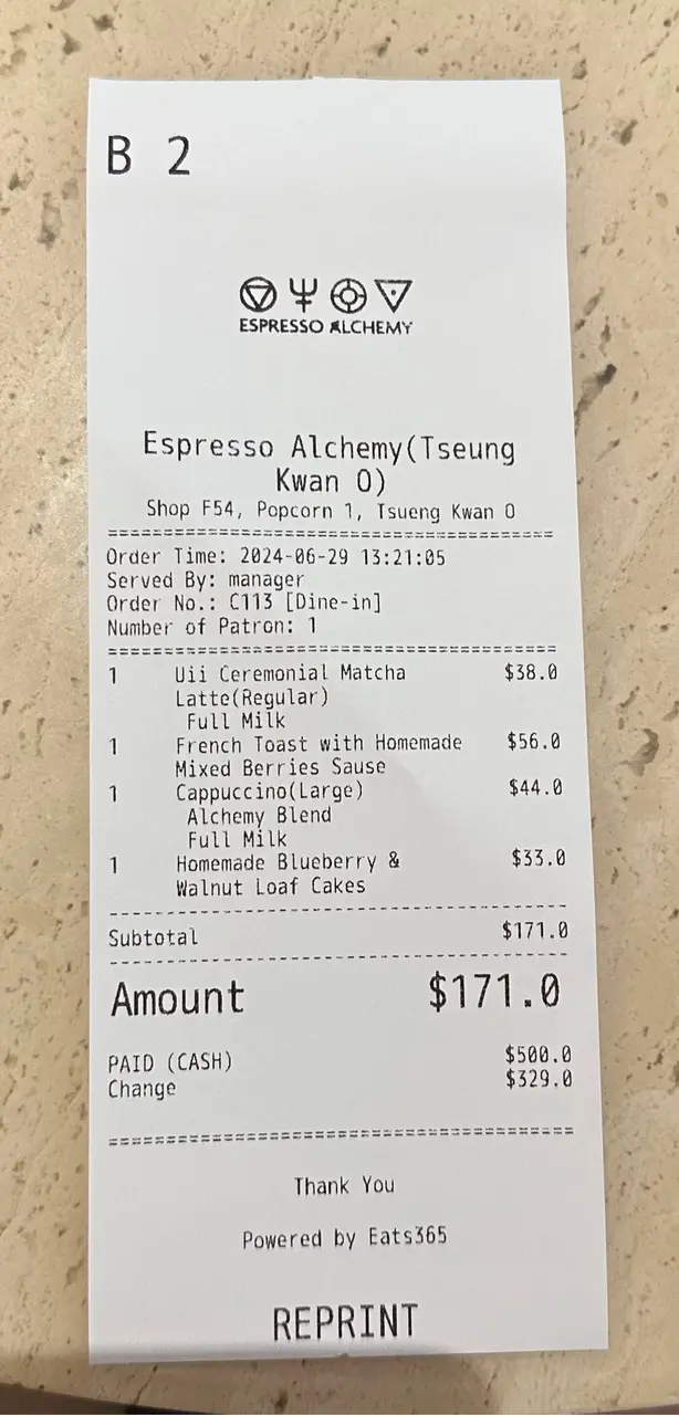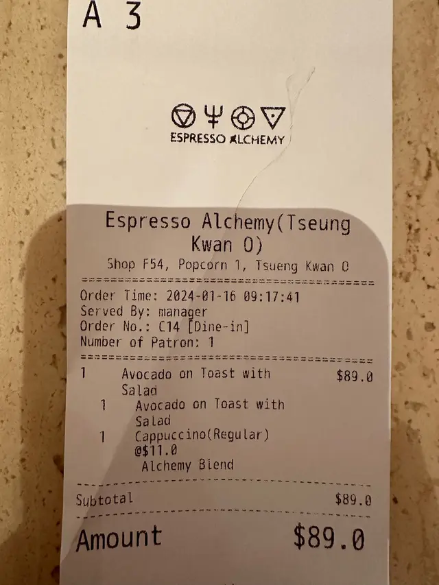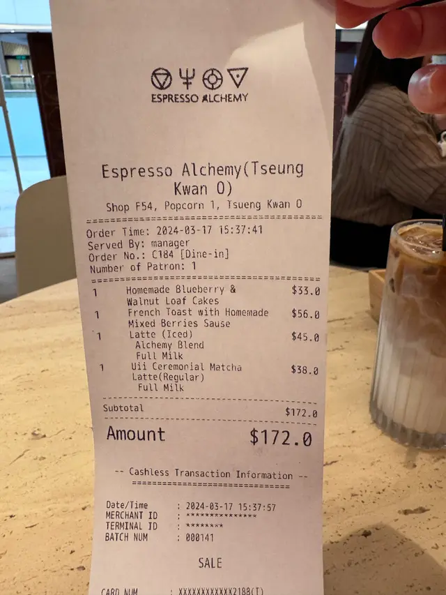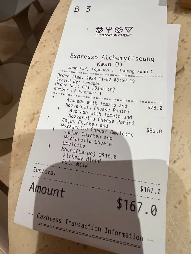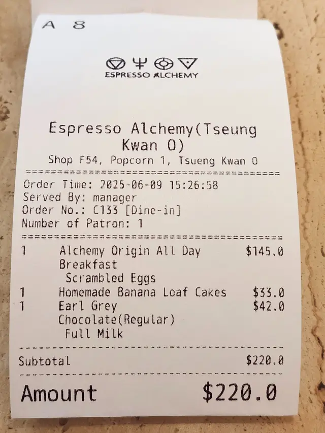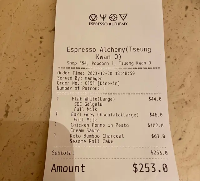 Espresso Alchemy (PopCorn 1 ) (將軍澳) 網址: https://s.openrice.com/QrbS0t9WC00 地址: 香港將軍澳唐賢街9號PopCorn 1 1樓F54號舖 電話: +852 26181632