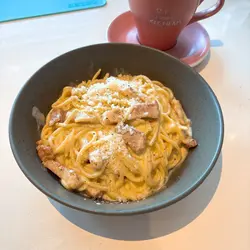 是日要去荃灣買野,想順便係附近搵個地方嘆下咖啡relax 下,上網搵到呢間位於如心廣場嘅Espresso Alchemy。餐廳面積唔大,不過最吸引我之處就係有一大塊落地玻璃,可以望到出面嘅風景,假日時一邊享受咖啡,一邊望下出面嘅風景,真係非常寫意。餐牌上選擇都好多,沙律、意粉、三文治、飲品、甜品咩都有,適合唔同口味嘅人仕。厚切意大利煙肉配卡邦尼意粉:煙肉嘅油香絕對係卡邦尼意粉重要部分之一,呢度嘅煙肉係厚切條狀,煎過後帶鹹香味,勁有口感,醬汁方面亦非常creamy,口感綿密,帶香濃嘅蛋香味,配合埋al dente 嘅意粉,非常掛汁,令人一啖一啖咁食過不停。檸檬汁烤雞煙肉意大利三文治:Panini 係意大利麵包嘅一種,烘過後外脆內軟,帶點煙韌,中間夾住煙肉以及加入檸檬汁烹調過嘅烤雞,煙韌嘅麵包配上嫩滑嘅雞肉,食落味道同口感都非常夾。法式西多士配自家製雜莓醬:西多士煎至金黃色,口感外脆內軟,唔會太甜,伴碟仲有自家製雜莓醬,每啖西多士都沾一下雜莓醬,味蕾嘅衝擊帶來意想不到嘅滿足感。Cappuccino:熱咖啡有兩個size,兩杯細嘅又飲唔晒,所以叫做一杯大嘅share。Cappuccino 拉花好靚,味道偏nutty,口感creamy,一邊享受brunch一邊嘆咖啡,真係非常寫意。…查看更多