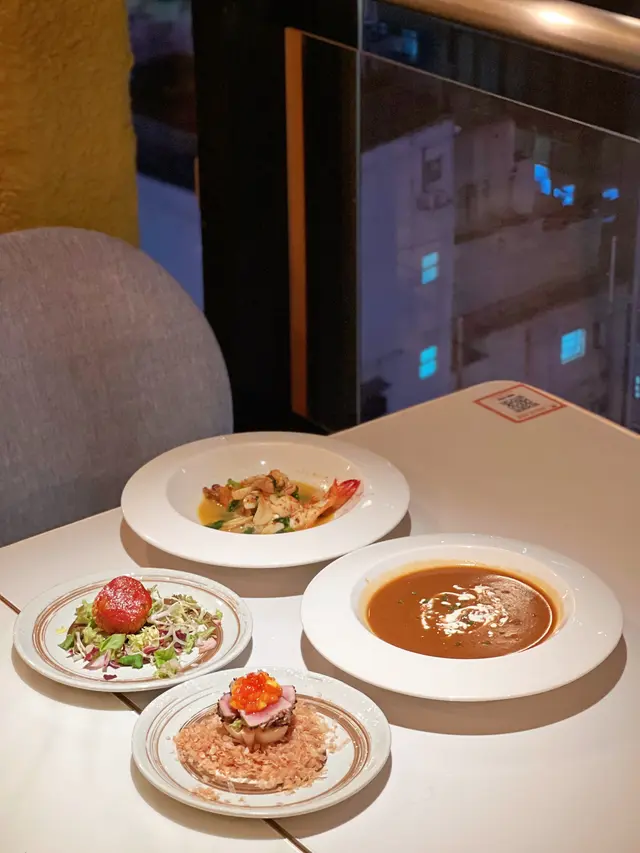 🇭🇰 Central 中環|EspumaSpanish dishes are not common and definitely not fine dining ones! Espuma is one of the few that serves not just any Spanish 🇪🇸 meal but a cuisine of it. We have tried their dinner set and here are the details: 𝐃𝐢𝐧𝐧𝐞𝐫 𝐒𝐞𝐭 𝐌𝐞𝐧𝐮 𝐒𝐭𝐚𝐫𝐭𝐞𝐫 •𝐂𝐨𝐥𝐝-𝐍𝐨𝐫𝐰𝐚𝐲 𝐒𝐚𝐥𝐦𝐨𝐧 𝐖𝐫𝐚𝐩𝐩𝐞𝐝 𝐰𝐢𝐭𝐡 𝐒𝐞𝐚𝐰𝐞𝐞𝐝, 𝐂𝐚𝐫𝐫𝐨𝐭 𝐏𝐮𝐫𝐞𝐞, 𝐂𝐢𝐭𝐫𝐮𝐬 挪威三文魚紫菜卷、甘筍泥、柑橘•𝐂𝐨𝐥𝐝-𝐘𝐞𝐥𝐥𝐨𝐰𝐟𝐢𝐧 𝐓𝐮𝐧𝐚 𝐒𝐞𝐚𝐬𝐚𝐦𝐞 𝐓𝐚𝐤𝐚𝐤𝐢, 𝐌𝐚𝐧𝐠𝐨 & 𝐏𝐚𝐩𝐚𝐲𝐚 𝐒𝐚𝐥𝐬𝐚, 𝐒𝐚𝐥𝐦𝐨𝐧 𝐑𝐨𝐞 胡椒芝麻煎黃鰭吞拿魚柳、鮮果莎莎、三文魚籽•𝐇𝐨𝐭-𝐂𝐡𝐨𝐫𝐢𝐳𝐨 𝐂𝐫𝐨𝐪𝐮𝐞𝐭𝐭𝐞 𝐰𝐢𝐭𝐡 𝐀𝐧𝐜𝐡𝐨𝐯𝐲, 𝐌𝐨𝐳𝐳𝐚𝐫𝐞𝐥𝐥𝐚 𝐂𝐡𝐞𝐞𝐬𝐞 西班牙辣肉腸炸薯波•𝐇𝐨𝐠-𝐊𝐢𝐧𝐠 𝐏𝐫𝐚𝐰𝐧, 𝐆𝐚𝐫𝐥𝐢𝐜, 𝐂𝐡𝐢𝐥𝐢, 𝐒𝐦𝐨𝐤𝐞 𝐏𝐚𝐩𝐫𝐢𝐤𝐚 虎蝦、香蒜、辣椒、煙紅椒粉Just the starters and we are already getting stuffed! From fresh salmon to hot croquette, all of them are both savory and appetizing! I especially love how heavy the prawn 🦐 sauce taste! 𝐒𝐨𝐮𝐩•𝐓𝐨𝐦𝐚𝐭𝐨 𝐆𝐚𝐳𝐩𝐚𝐜𝐡𝐨 𝐂𝐨𝐥𝐝 𝐒𝐨𝐮𝐩 蕃茄凍湯•𝐋𝐨𝐛𝐬𝐭𝐞𝐫 𝐁𝐢𝐬𝐪𝐮𝐞 龍蝦濃湯The bisque is so heavy in lobster 🦞 flavour! It is also so creamy while the tomato cold soup has a hint of sour taste to prepare your stomach for what’s coming next! 𝐌𝐚𝐢𝐧•𝐋𝐚 𝐌𝐚𝐟𝐚𝐥𝐝𝐚 𝐏𝐚𝐬𝐭𝐚 𝐓𝐨𝐬𝐬𝐞𝐝 𝐰𝐢𝐭𝐡 𝐑𝐨𝐜𝐤𝐞𝐭 𝐋𝐞𝐚𝐯𝐞𝐬, 𝐇𝐨𝐦𝐞𝐦𝐚𝐝𝐞 𝐖𝐚𝐠𝐲𝐮 𝐌𝐞𝐭𝐚 𝐁𝐚𝐥𝐥 𝐢𝐧 𝐑𝐨𝐦𝐞𝐬𝐜𝐨 𝐒𝐚𝐮𝐜𝐞 波浪濶麵、火箭菜、手打和牛肉丸、堅果烤紅椒醬•𝐂𝐡𝐚𝐫-𝐠𝐫𝐢𝐥𝐥𝐞𝐝 𝟑𝟔𝟎 𝐃𝐚𝐲𝐬 𝐆𝐫𝐚𝐢𝐧-𝐅𝐞𝐝 𝐔.𝐒. 𝐏𝐫𝐢𝐦𝐞 𝐁𝐞𝐞𝐟 𝐑𝐢𝐛𝐞𝐲𝐞 炭燒360日穀飼美國頂級牛肉眼The pasta is so creamy and I love every bit of it! 🤩 The meatballs are very soft as they are made by hand! The ribeye is also well grilled with the exterior being crispy while the interior is still soft and not chewy! 𝐃𝐞𝐬𝐬𝐞𝐫𝐭 •𝐃𝐞𝐬𝐬𝐞𝐫𝐭 𝐨𝐟 𝐭𝐡𝐞 𝐃𝐚𝐲 精選甜品•𝐓𝐫𝐨𝐩𝐢𝐜𝐚𝐥 𝐁𝐨𝐦𝐛𝐨𝐧 招牌鮮雜果麻糬窩夫配雪糕The dessert of the day was churros, which are so crispy, but I prefer the tropical bombon, which is on another level! 🥹 The waffles combined with the custard and ice cream is basically heaven for your mouth! I highly recommend this! 📍17/F, M88, Wellington Place, 2-8 Wellington Street, Central💲Price per person: $454 + 10% service charge…查看更多