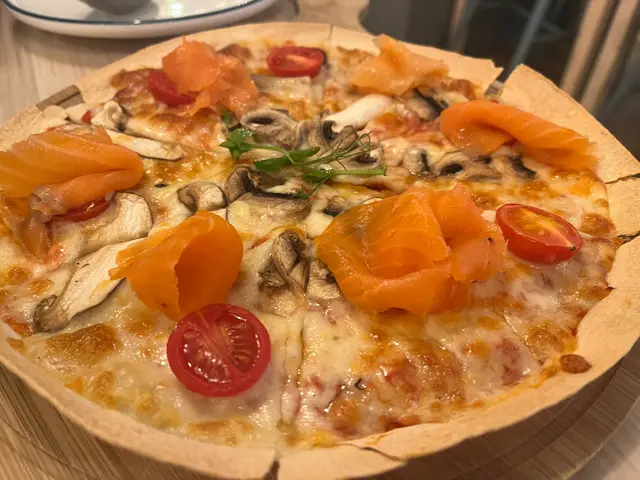 煙三文魚水牛芝士薄餅本身唔太好食三文魚,不過呢度啲三文魚好新鮮,味道鮮美,加埋個薄餅焗到啱啱好。