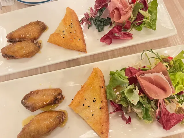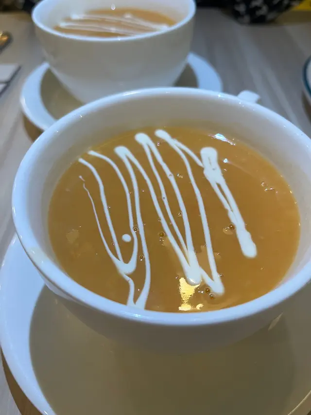 與好友共聚,無意中發現這間餐廳好像不錯,環境乾淨企理,裝修亦很有情調。雖然是兩個女仔,理應食量不太大,但我們都毅然決定叫了個二人套餐。首先是個餐湯,一般我對餐湯都唔會太有期望,不過呢個南瓜湯真的不錯,味道濃郁。前菜是巴馬風乾火腿季節沙律、黑白芝麻蝦多士、焦糖牛油雞翼火腿配上沙律菜,沙律菜都好新鮮,配埋火腿啱啱好。蝦多士炸得好脆,好想再食多件吖。焦糖牛油雞翼,雞翼外面沾滿焦糖,入面又炸得啱啱好,加分。