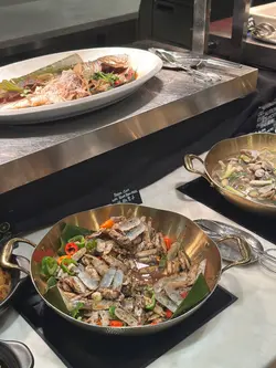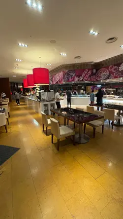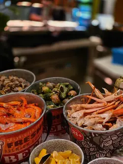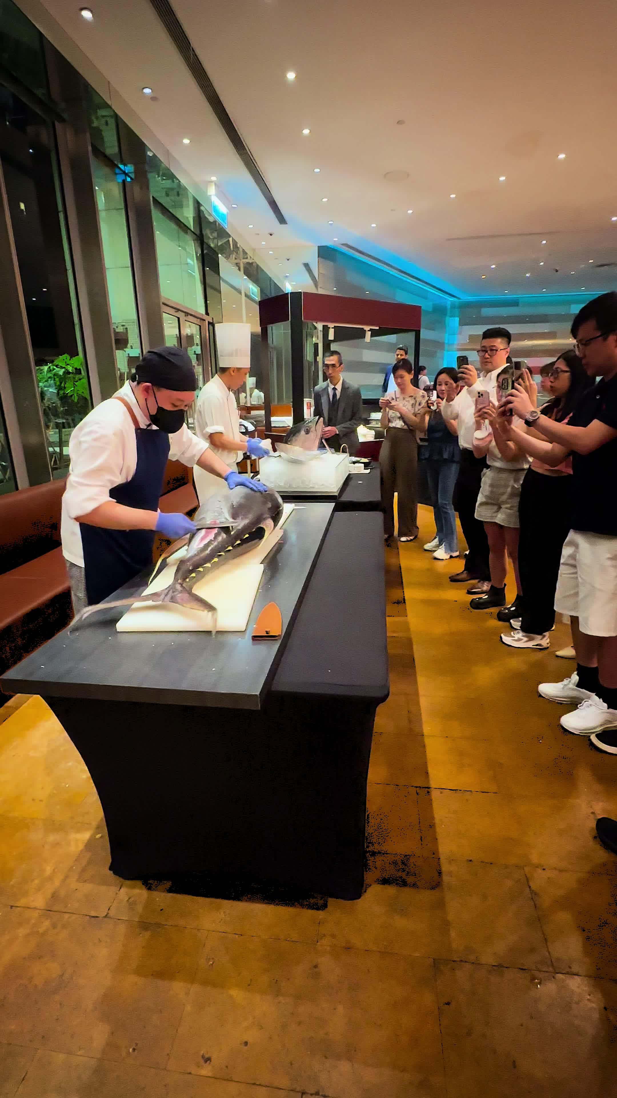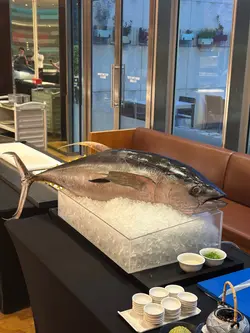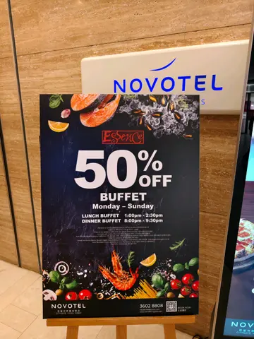 位於東涌諾富特東薈城酒店的自助餐餐廳。 友朋自遠方而來,為盡地主之誼,接機自然少不了,匆匆的香港之旅,入住在東涌酒店,行李才剛安頓好,已被焦急的我拉出去食晚餐;有時千挑萬選倒不如選一間就腳的,於是這間環境寬敞舒適,食物選擇種類多又有半價優惠的酒店自助餐,便成了我們當晚聚腳之選了。 ⋆__ Dinner Buffet (經官網預約 50%off) ___⋆ 這間酒店的自助餐,除非是住在這裡或剛好出入機場,否則真的較少有外來客山水遠來享用。因此,餐廳的服務品質自然更勝一籌:熱情的招待、餐點的補充頻率以及收碟速度等等都令人滿意。而入座的客人更會贈送半隻黑松露芝士焗龍蝦和蒸生蠔,鮮甜肥美,令人十分滿足。.✿ 冰鎮海鮮區 冰鎮海鮮不算多,但這個價錢來說,普遍比較受歡迎的長腳蟹腳、翡翠螺、凍蝦及大蜆等都有供應,真心算不錯。凍海鮮的品質普遍不錯,肉質爽嫩,貝類亦不見有沙,整體新鮮度令人滿意。 .✿ 刺身壽司區 刺身有帶子、三文魚、吞拿魚、八爪魚、鮑魚等,款式算不少;另外也有提供我喜歡的芥辣八爪魚任取。而壽司的款式則相對普通,建議把Qᴜᴏᴛᴀ放在其他地方。.✿ 熟食區熟食區有多款時令海鮮、蒸魚、不同的串燒、自選湯麵,粥粉麵飯、燉湯等,選擇很多,自己覺得尚算滿足。.✿ 現切新鮮油甘魚每晚7點,餐廳都會有師傅現切油甘魚表演,伴隨著搖鈴聲,只見師傅刀起刀落,一片片鮮美的油甘魚便端到各食客碟前。油甘魚有腩肉和背位,香氣四溢,鮮甜肥美。.✿ 甜品區食自助餐又豈能不留肚食甜品,這間的甜品款式也算不少,不同款式的蛋糕及切餅,精緻用心,味道也很不錯,吃過幾款都未見中伏,值得留肚!雪糕款式只有Häagen-Dazs的幾個口味,對雪糕迷來說或許略顯不足。另外,童年最喜歡的朱古力噴泉也有提供啊,雖然人大了,真的不喜歡將生果浸在朱古力熔漿上,但這個是儀式感的問題,朱古力噴泉還是值得體驗一下呢!…查看更多
