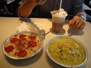 由於昂坪360九月有生日優惠, 所以友人和我在最後一個九月的星期日來了坐纜車.是日一早出門, 但排了很久的隊, 抵達昂坪市集己一時半了. 從早到那時還未吃東西. 所以立刻找東西吃, 環顧四週, 價錢和食物比較可信的, 我覺得只有Euro go go. 所以便去了.因為想著不會在昂坪逗留太久, 所以只點了一個意粉和一客雞翼. 打算回到市區後, 才再找些東西吃.辣肉腸, 火腿, 煙肉意粉($43) -- 只有一點不太滿意, 就是意粉過諗. 但以快餐來說, 是可以接受的.香辣雞翼($36) -- 不知是否送錯了, 香辣雞翼一點辣味也沒有, 但就有好濃的蜜糖味. 熱辣辣好好味, 可能錯有錯着
