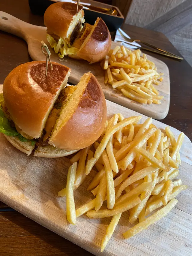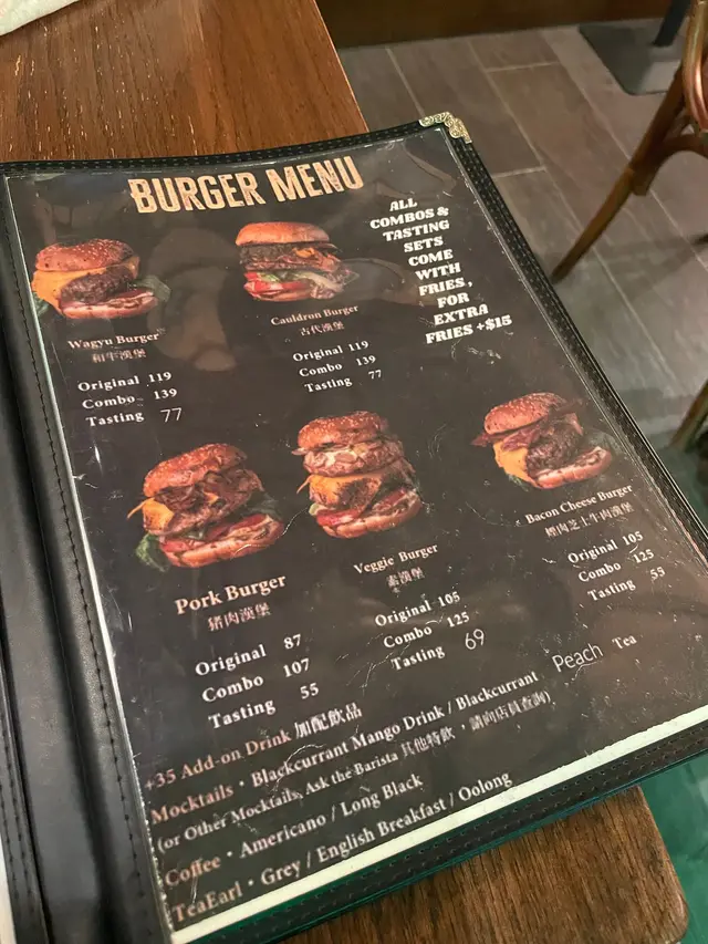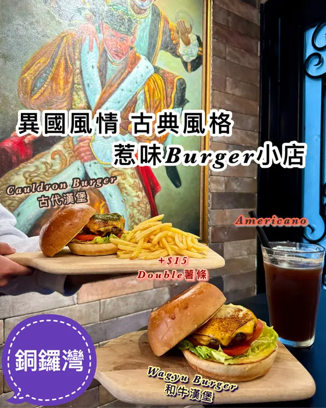 和朋友說起不如搞個讀書會📖(雖然只有我們兩個🤣),互相分享最近讀過的書,分享一下大家從中得著些什麼以及有怎樣的感受。真的很喜歡這樣的交流☺️,互相聆聽討論分享,增值知識與啟發思考🌟。然後我們就去了銅鑼灣一間靜靜的漢堡店,邊吃漢堡邊進行小小讀書會🤓。其實小餐店就在時代廣場旁邊,但這裡和那邊好像完全兩個世界 ── 一邊很幽靜,一邊很喧鬧。餐店裡面佈置復古,有點古堡感覺🏰,完全就是讀書會的氛圍😆。我們點了和牛漢堡與古代漢堡,加一個薯條,和兩杯 matcha latte。以我們點的兩款漢堡為例,有分:Original ($119)、Combo ($139)、Tasting ($77)。分別就是單點、跟薯條及漢堡轉細size。和牛漢堡牛味好濃😋,牛肉好厚,肉汁豐富。而古代漢堡特別在於它的醬汁。麵包好鬆軟挺身,兩個都好好食😋。而薯條沒特別,和麥當勞的很似😂。至於matcha latte ($45),奶味幾香,抹茶味可再加強。那晚整個店子只有我們,溫暖燈光中,歎著抹茶鮮奶,分享著書本字句,背景播著柔聲音樂,理想中的讀書會就是這般了🥰。臨走前,和歡樂的店員聊了幾句,伴著她熱情的大笑,說聲謝謝,晚安🌃。…查看更多