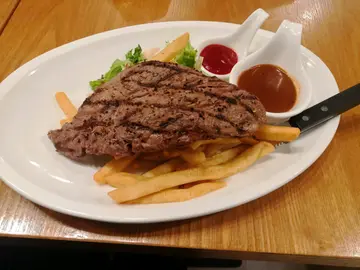 朋友介紹來呢度食,看到食評有點担心。抱住試吓的心態,親身體驗係咪咁差先。不論男、女的淺啡色衫年輕一些的侍應、態度都非常好,好樂意幫忙。我原本坐的位置剛巧有一大班人一齊,比較嘈吵,同個男仔講,他立即幫我轉位。點餐時,大致都ok , 只是覺得綠色衫的侍應有點不耐煩,朋友問多句,都有點唔想答你咁,耐性有待改善。但後來埋單傾計,態度多ok 喎。午餐前菜:餐包餐湯或沙律主菜:點左兩個餐-左個牛扒和盲鰽魚,魚好好食,3 件,好精緻。煎香塊皮,d 肉好鮮嫩。d 配菜好豐富:有南瓜、車厘茄、薯仔、菜(有少少醋調味)…查看更多