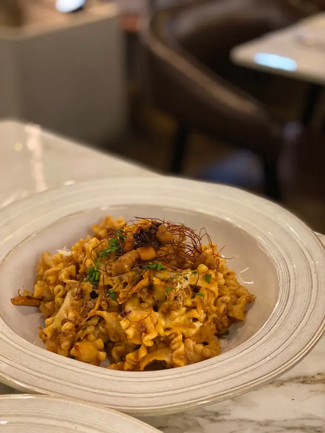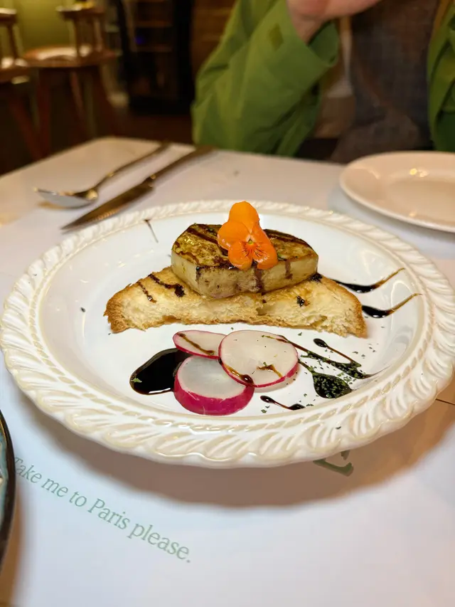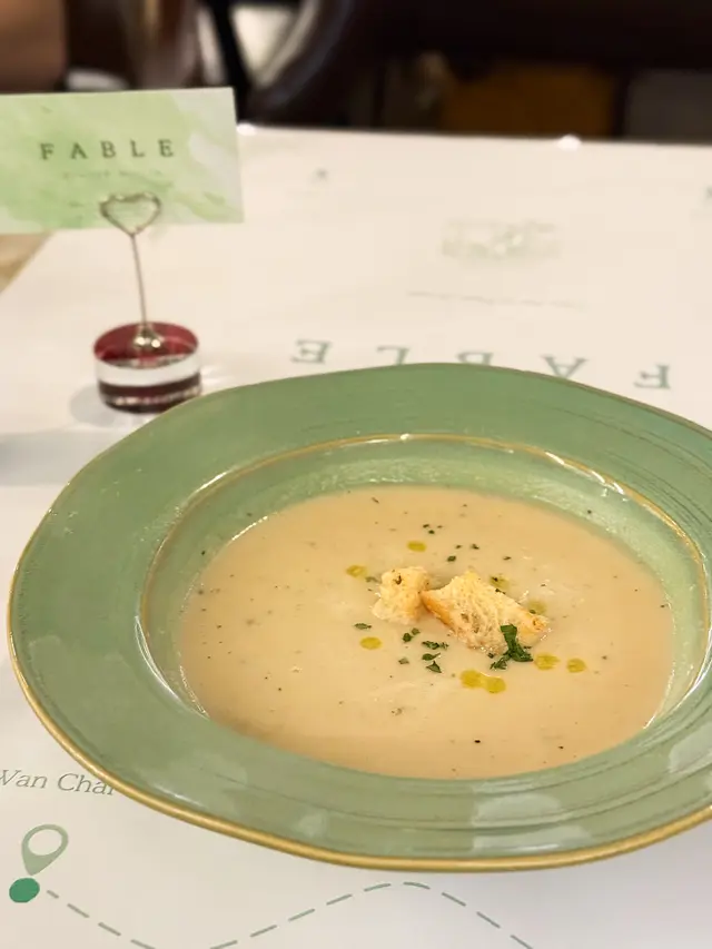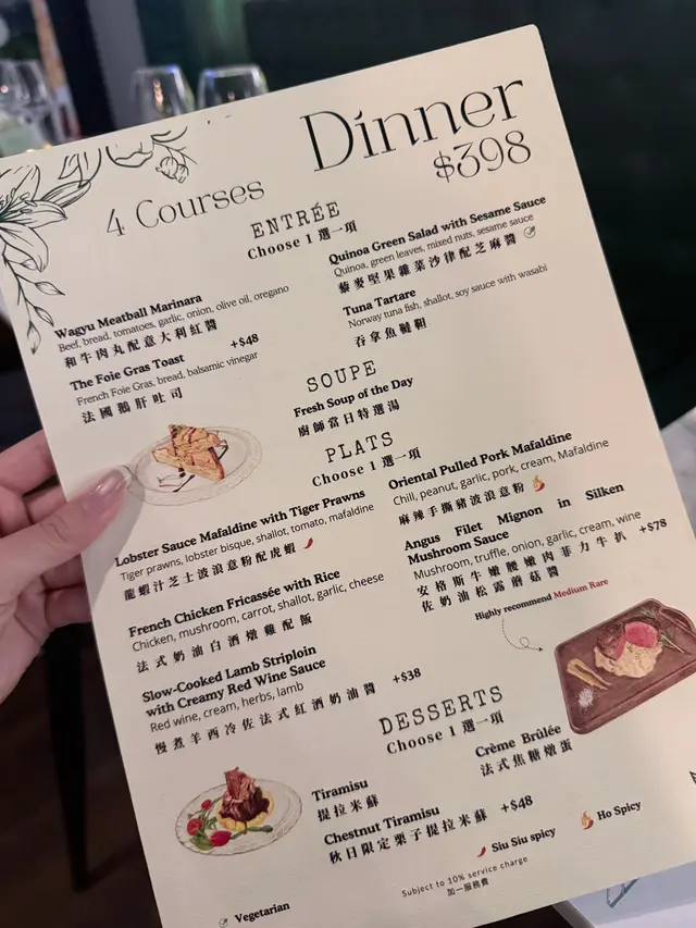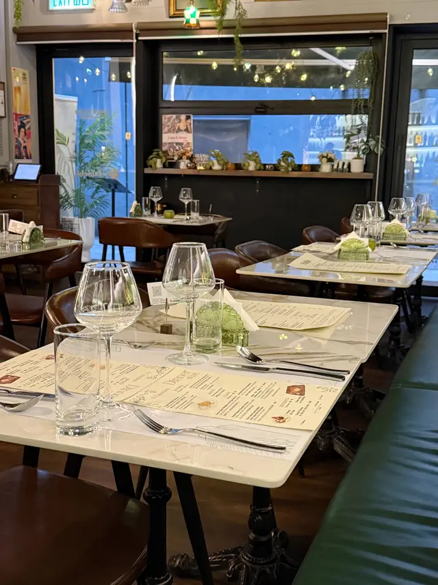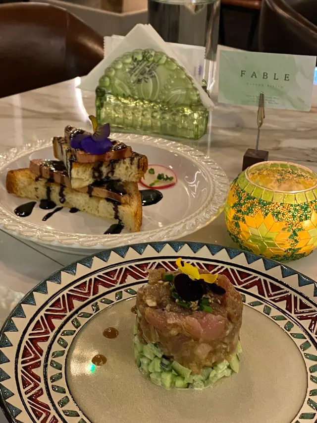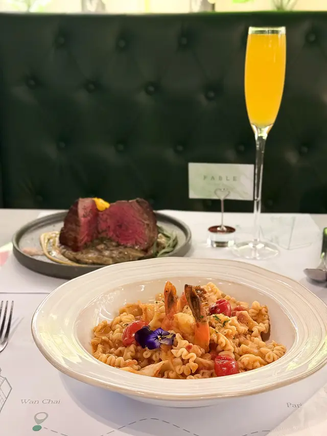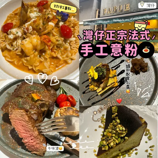 朋友介紹嚟灣仔呢間巷仔內嘅手工意粉店食法國菜式,餐廳位置都幾唔顯眼🤣,要行入小巷先到,餐廳雖然位置唔多,但裝修都幾別緻,主打手工意粉,星期日午市都滿座🤓,而且仲有午市套餐🙂❣️Fable lunch Menu $188*4❣️前菜📍香煎鵝肝配黑松露醬*2 +$68鵝肝充滿油脂感,黑松露味都非常濃郁,但份量略嫌偏少😛📍藜麥堅果雜菜沙律配芝麻醬普通沙律菜嘅味道🤪📍手打安格斯牛肉丸配意大利紅醬芝士味道有啲似IKEA肉丸😅配上蕃茄醬🥫❣️主菜📍龍蝦汁芝士波浪意粉配虎蝦 +$28呢度主打手工意粉,波浪意粉麵質煙韌,但都掛到汁,配上爽口嘅虎蝦🦐味道唔錯👍🏻📍香橙干邑醬煎鴨胸配烤薯塊 +$28鴨胸肉質一般,醬汁味道亦唔係好突出😅📍草飼肉眼牛扒配烤蒜法國紅酒汁 +$78牛肉味道濃郁😋,叫咗五成熟所以入口好嫩滑同保留肉汁🙂📍慢煮牛頰肉醬手工寛意粉 呢一款嘅手工意粉就比較硬身,牛頰肉好嫩滑,但醬汁比較濃蓋過咗牛味🤪❣️甜品📍提拉米蘇呢度食到正宗嘅法式Tiramisu,裏面嘅酒味相當濃郁,鍾意酒味嘅朋友應該非常喜歡🥰📍法式焦糖燉蛋燉蛋嫩滑配上脆身嘅焦糖非常好味😋📍開心果巴斯克芝士蛋糕 +$48蛋糕開心果味加芝士味🍰非常濃郁,亦做到巴斯克嗰種軟軟流心嘅質感🤓❣️追加飲品📍荔枝梳打*2 +$28📍鮮榨鳳梨薑冰茶 +$28📍凍咖啡拿鐵 +$28飲品正常發揮,冇咩特別🤪❣️追加小食📍松露蛋黃醬薯條 +$40📍蜂蜜辣味雞翼 +$40📍烤蒜西蘭花苗 +$40小食亦都正常發揮😜🏦是次消費總額 $1432(人均消費 $358) 🍴須加一服務費👅好味度:8(10分滿分)食物質素中規中矩😜,主打手打意粉,有啲麵質略嫌偏硬,口味真係因人而異😏,反而甜品有驚喜,有正宗嘅Tiramisu同巴斯克蛋糕,但食物價錢都比較進取🤣,有機會行過附近都可以一試🤓🍽️Fable 灣仔安樂里1號利昌大廈地下低層D號舖…查看更多