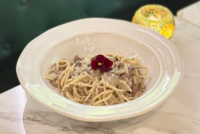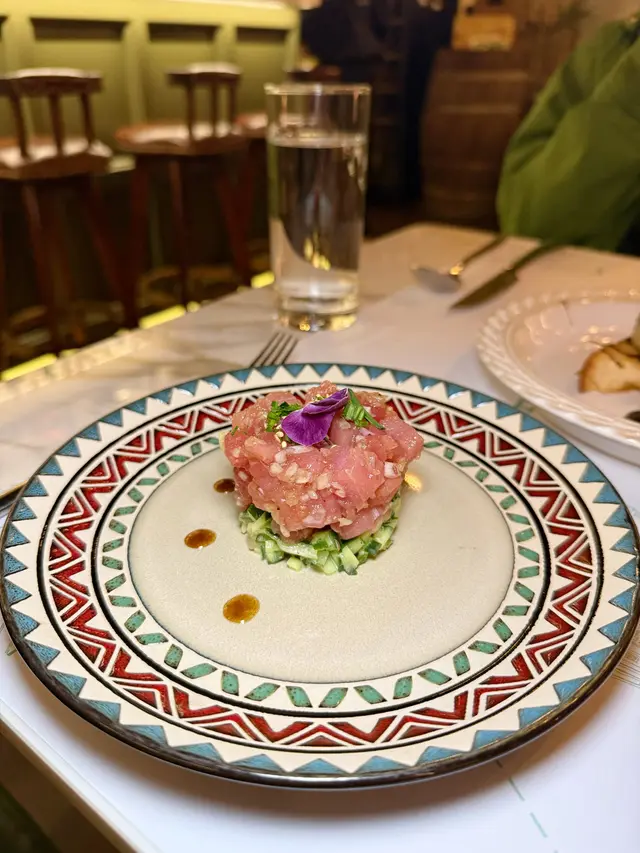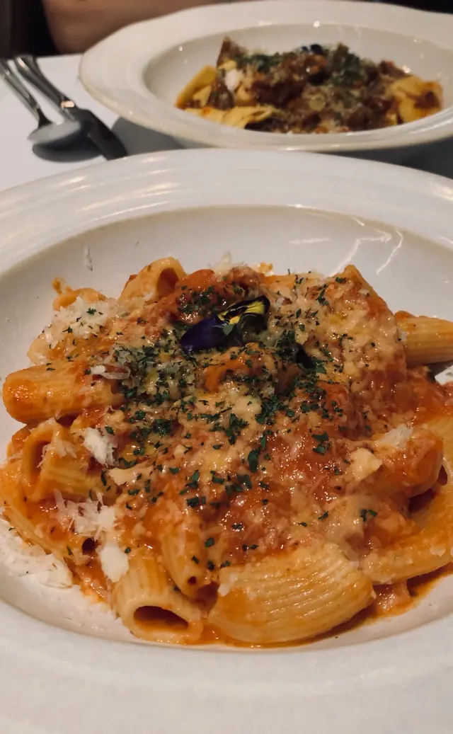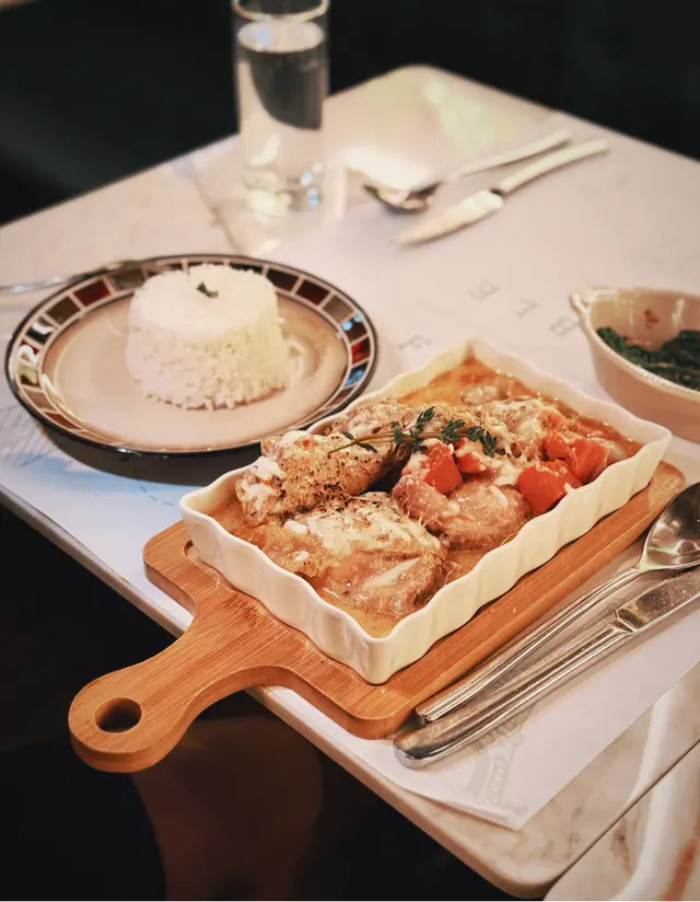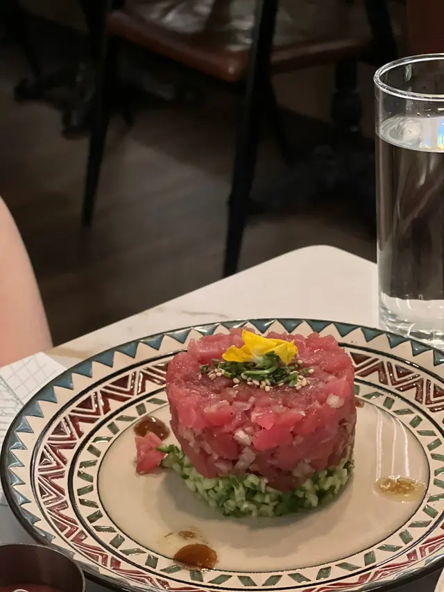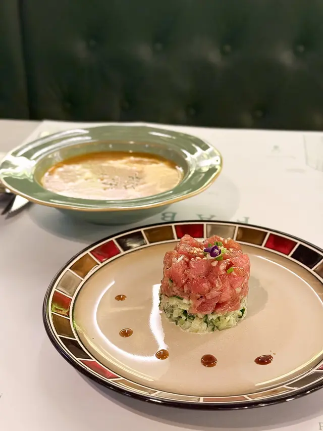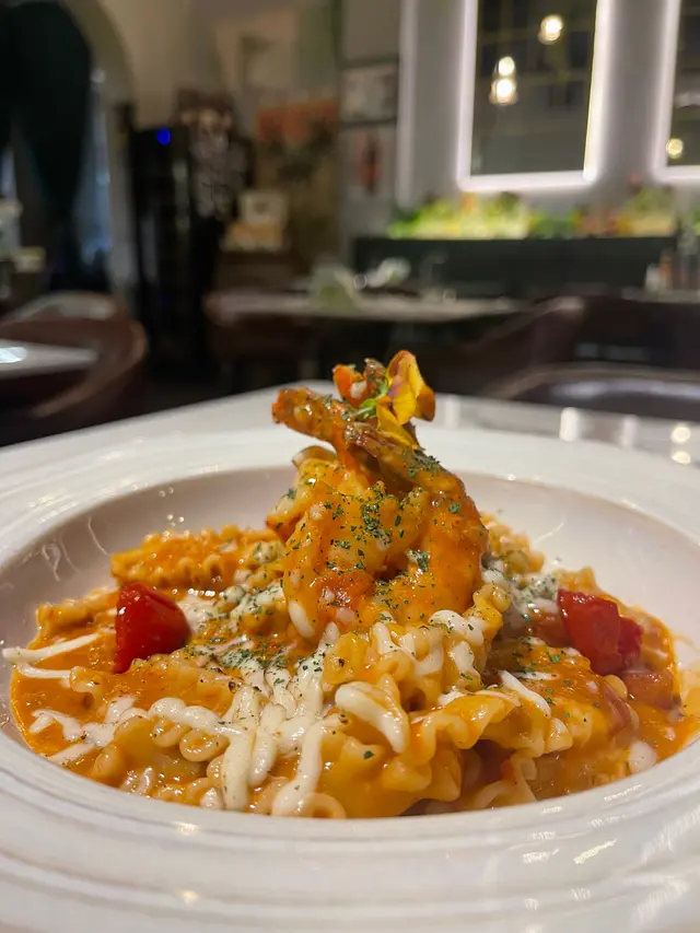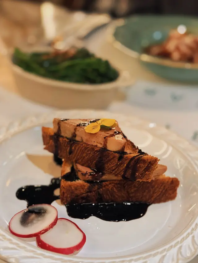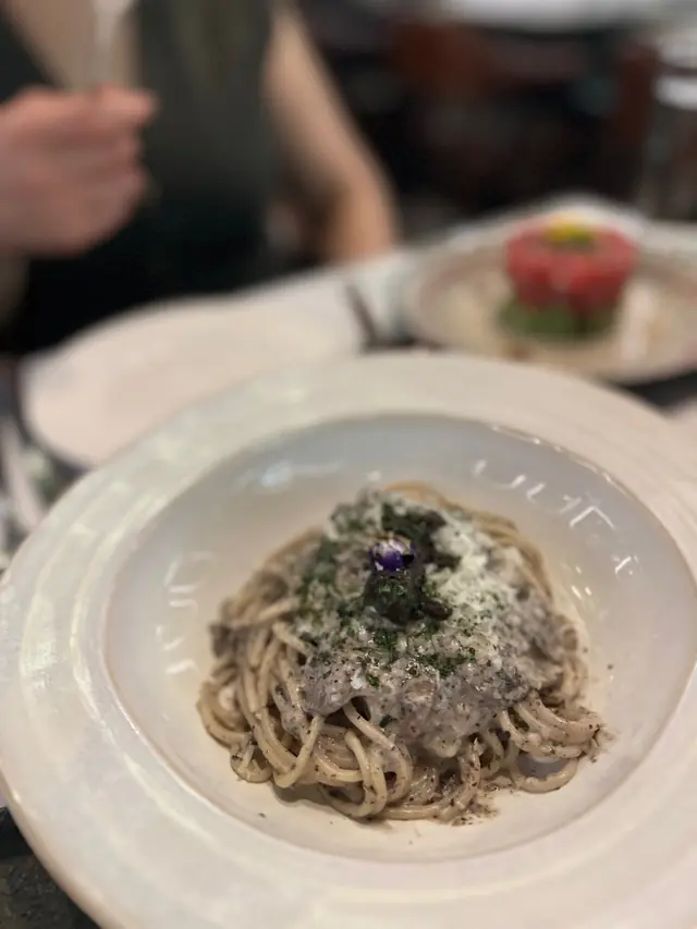 朋友介紹嚟灣仔呢間巷仔內嘅手工意粉店食法國菜式,餐廳位置都幾唔顯眼🤣,要行入小巷先到,餐廳雖然位置唔多,但裝修都幾別緻,主打手工意粉,星期日午市都滿座🤓,而且仲有午市套餐🙂❣️Fable lunch Menu $188*4❣️前菜📍香煎鵝肝配黑松露醬*2 +$68鵝肝充滿油脂感,黑松露味都非常濃郁,但份量略嫌偏少😛📍藜麥堅果雜菜沙律配芝麻醬普通沙律菜嘅味道🤪📍手打安格斯牛肉丸配意大利紅醬芝士味道有啲似IKEA肉丸😅配上蕃茄醬🥫❣️主菜📍龍蝦汁芝士波浪意粉配虎蝦 +$28呢度主打手工意粉,波浪意粉麵質煙韌,但都掛到汁,配上爽口嘅虎蝦🦐味道唔錯👍🏻📍香橙干邑醬煎鴨胸配烤薯塊 +$28鴨胸肉質一般,醬汁味道亦唔係好突出😅📍草飼肉眼牛扒配烤蒜法國紅酒汁 +$78牛肉味道濃郁😋,叫咗五成熟所以入口好嫩滑同保留肉汁🙂📍慢煮牛頰肉醬手工寛意粉 呢一款嘅手工意粉就比較硬身,牛頰肉好嫩滑,但醬汁比較濃蓋過咗牛味🤪❣️甜品📍提拉米蘇呢度食到正宗嘅法式Tiramisu,裏面嘅酒味相當濃郁,鍾意酒味嘅朋友應該非常喜歡🥰📍法式焦糖燉蛋燉蛋嫩滑配上脆身嘅焦糖非常好味😋📍開心果巴斯克芝士蛋糕 +$48蛋糕開心果味加芝士味🍰非常濃郁,亦做到巴斯克嗰種軟軟流心嘅質感🤓❣️追加飲品📍荔枝梳打*2 +$28📍鮮榨鳳梨薑冰茶 +$28📍凍咖啡拿鐵 +$28飲品正常發揮,冇咩特別🤪❣️追加小食📍松露蛋黃醬薯條 +$40📍蜂蜜辣味雞翼 +$40📍烤蒜西蘭花苗 +$40小食亦都正常發揮😜🏦是次消費總額 $1432(人均消費 $358) 🍴須加一服務費👅好味度:8(10分滿分)食物質素中規中矩😜,主打手打意粉,有啲麵質略嫌偏硬,口味真係因人而異😏,反而甜品有驚喜,有正宗嘅Tiramisu同巴斯克蛋糕,但食物價錢都比較進取🤣,有機會行過附近都可以一試🤓🍽️Fable 灣仔安樂里1號利昌大廈地下低層D號舖…查看更多