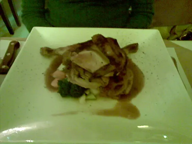 個沙律D蔬菜食得出幾新鮮,之後個湯,我個人覺得個龍蝦湯唔錯,只係我朋友覺得個雜菜湯有D淡。之後既主菜我同我朋友都覺得唔錯,我食果個羊架D肉幾嫩,又無咩酥咩,加上D汁,幾好食,只係份量比較少,好彩個侍應肯幫我個食咗一半既菜加個飯。而我朋友食果個龍蝦天使麵,佢話覺得個龍蝦好香,又多肉,可能女仔食得少啲,對佢黎講份量剛剛好,食完主菜已經話好飽。到上甜品既時候,我點咗個芝士蛋糕,我個人就無咩特別既感想,點係....可能個侍應誤會啦,佢係我朋友個芝士蛋糕上寫咗D字,我諗大家都應該知道大約字咗D咩啦(奸笑)。可能因為呢件事,我同果位朋友(依加要改口啦XD)