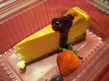紐約芝士餅個外觀焗得唔錯,表面幾平滑,而芝士味挺香濃,底下消化餅底厚薄啱啱好