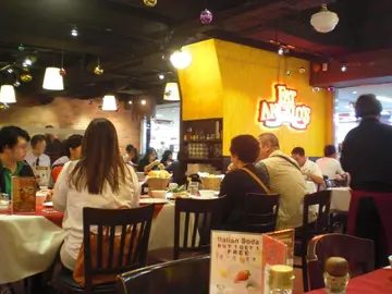 因為朋友生日,4個人就㨂左呢間食個dinner地點係商場內,幾容易揾。我地被安排坐左係門口,枱有少少擺左係出面,隔離就係鋪頭,有啲啲奇怪因為叫main 會有沙律同面包送一上個面包,嘩~有4個大包Size就好大啦,但一咬就,好硬呀=_= 如果淨係食果包係食唔落嫁,好大嘅面粉味。其實我係一個勁鐘意食面包,冇包不歡嘅人。我覺得白面包仲好食過呢個面包:(係加左啲olive oil 同vinegar 先食得落。我地叫左個pizza,好似係雞黎嘅。呢個pizza都幾難食下。好硬同埋冇咩味。呢個算係我食過最難食嘅pizza,呢度啲野仲要鬼咁貴。超級唔抵食。呢個都好似成190到突然覺得pizza hut pizza好好味。之後waiter漏單,叫左個牛肉千層意粉。我覺得這個還好。食落口有啲似食緊羊肉不過就夠熱,哈哈。仲叫左個炸薯條。成70幾蚊嫁,但勁細兜,成幾蚊一條。食落去,同一般薯條,唔見得有咩咁大分別。佢仲要好似食緊薯蓉!!好就好在地方都坐得幾舒服,waiter主動fill沙律。哦~原來任食沙律