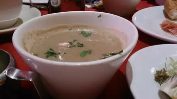 橙紅嘅濃湯,果然濃郁,裡面真喺有少少蟹肉,絕無欺場,只喺有啲啲鹹,否則就完美喇。
