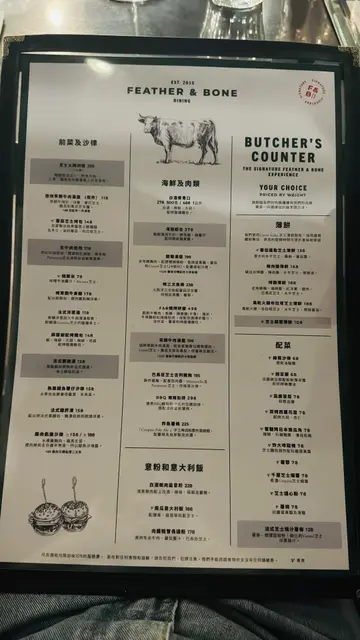 Feather & Bone一直以嚟都係賣高質靚牛扒同埋凍肉馳名,但其實佢哋嘅餐廳部分都絕對係臥虎藏龍。入去餐廳前,會經過賣澳洲特產的商品部,好復古、好有去左澳洲古商店的感覺。有我常在澳洲見到的自家品牌產品。餐廳無論室內或戶外都非常浪漫氣氛。還有熟食牛肉賣。逢星期二設有 T Bone 優惠。首先,重頭戲當然係個澳洲和牛肉眼扒啦!叫咗五成熟,塊扒一上枱,個賣相已經贏咗。外面煎到有條好靚嘅焦香烤痕,餐廳已好細心地幫我哋切開咗,裏面係啱啱好嘅粉紅色,肉汁多到鎖唔住,流咗出嚟。入口第一個感覺就係「嫩」!和牛嘅油脂分布真係好均勻,好似雪花咁,食落去油脂香係口腔裏面爆發,但完全唔會覺得膩口。個種濃郁嘅牛味,加上餐廳提供的三款醬,已經足夠帶出肉質嘅鮮甜。不過我個人就最鍾意就咁食,享受最原始嘅肉香。絕對係值回票價!食完牛,試埋佢哋嘅豬肋骨。豬肋骨甜甜哋又帶少少煙燻味,非常之惹味。烤嘅火候控制得好好,肉質輕易離骨,但又唔會話爛溶溶,仲保持到多少咬口。個種烤香同醬汁嘅結合,令人食到舔舔脷,係一種好滿足、好放縱嘅感覺。招牌冰桃茶絕對係必點之選!佢唔係普通嘅罐裝桃茶,飲得出係用咗真嘅桃肉去整,甜度適中,好清新解渴。食完濃味嘅牛扒同豬肋骨,啜返一大啖冰凍嘅桃茶,即刻可以中和返個油膩感,個感覺真係一流,令人可以繼續戰鬥落去。Bloody Mary 調得非常好,蕃茄味同伏特加嘅比例平衡,仲加入咗一啲獨特嘅香料,飲落去好順喉,帶少少辣勁,好刺激胃口。鍾意飲兩杯嘅朋友,叫返杯嚟配肉食,真係錦上添花。查看更多