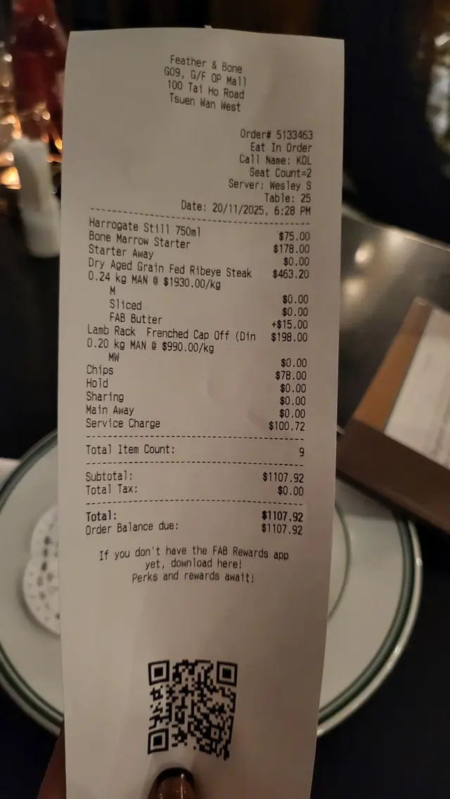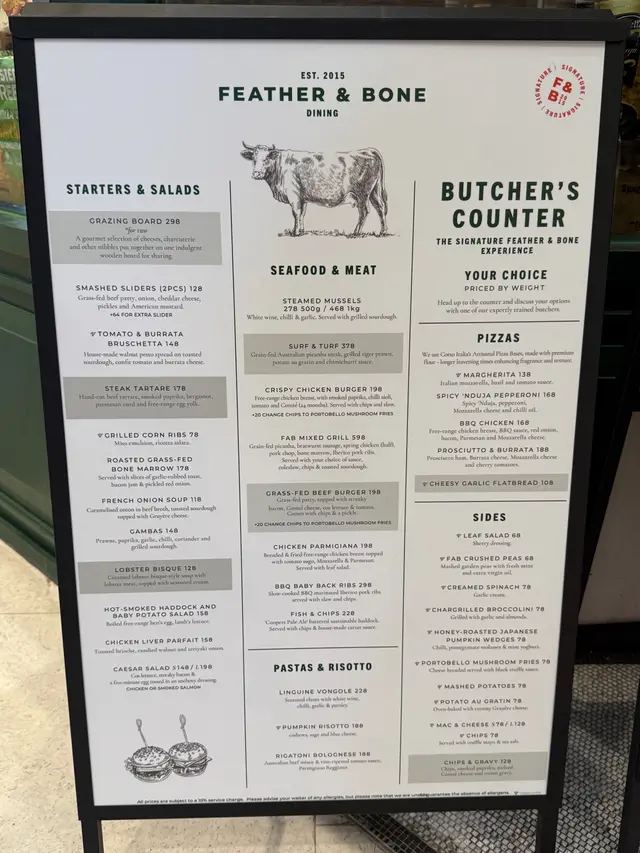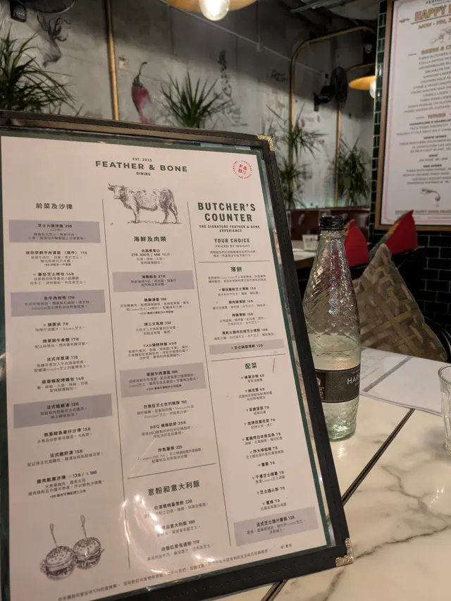 今次專登帶牛痴過嚟海之戀Feather & Bone,估唔到商場裏面藏住咁高質扒房!樓底高配復古皮梳化,開放式肉櫃望見原塊乾式熟成牛肉,零售區睇見全冰櫃各國靚牛、羊, 全部任君選擇! 那炭烤香飄過嚟已經流口水, 立即親自揀定心水肉扒,交俾廚房的師傅即場料理,成個過程似高級肉檔混合私房廚房,儀式感爆燈💫▪️ 靈魂前菜:Bone Marrow Starter烤到滋滋響嘅牛骨髓,用匙羹一刮——油潤膏狀質感撞脆多士,濃郁骨膠原感令人即刻忘卻卡路里▪️ 肉食主場雙拼:•Dray aged grain fed Ribeye Steak (0.24kg)親自揀嘅乾式熟成肋眼特別有感情!30日乾式熟成肉眼扒切開透出玫紅肌理,外層焦脆內裡柔嫩,FAB秘製牛油融化後滲出迷人香氣及口感•Lam Rack frenched cap off (0.2kg)法式修邊羊架鎖住肉汁,輕輕切開已經感受到彈性,淡粉紅色羊肉味道層次分明, 炭烤味極香, 簡單撒海鹽已經帶出草原氣息! ▪️ 瘋狂回購位:Chips配神級 Truffle mayo粗薯條炸到外脆內綿,重點係嗰碟mayo——松露香氣濃郁,薯條未食晒醬已見底逢星期二T Bone之夜已經mark實下次慶祝!下次坐室外, 望住海境及聖誕裝飾,終於明點解有人成日話「食肉都要有格調」🔥…查看更多
