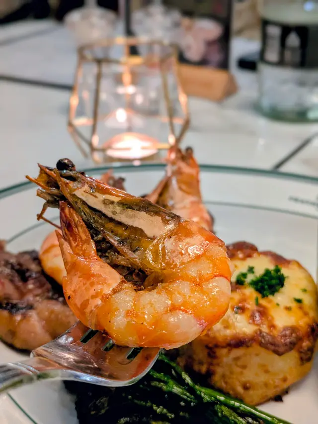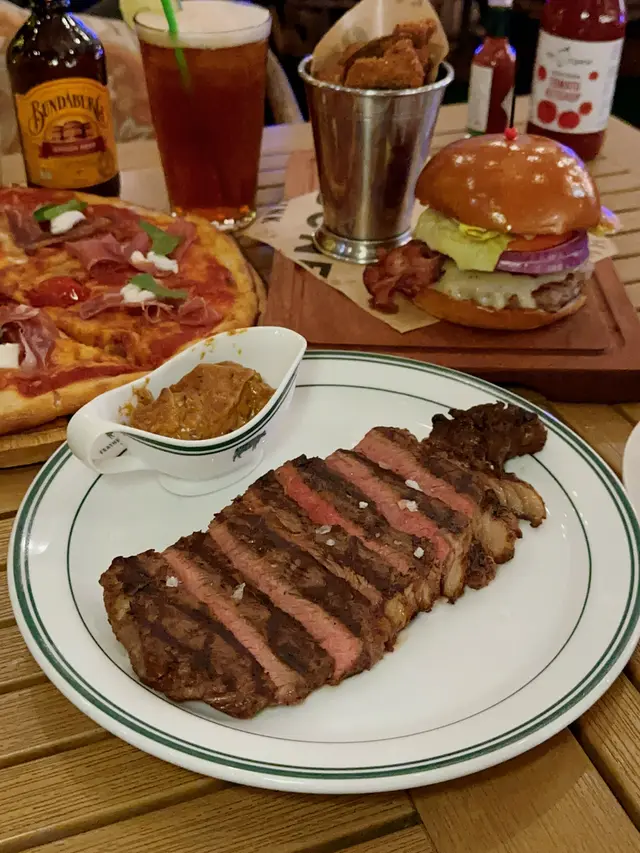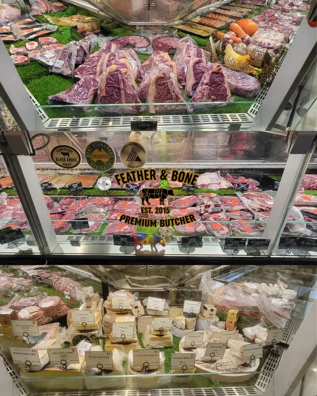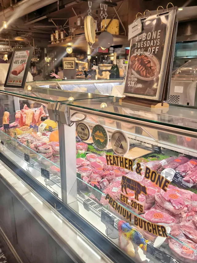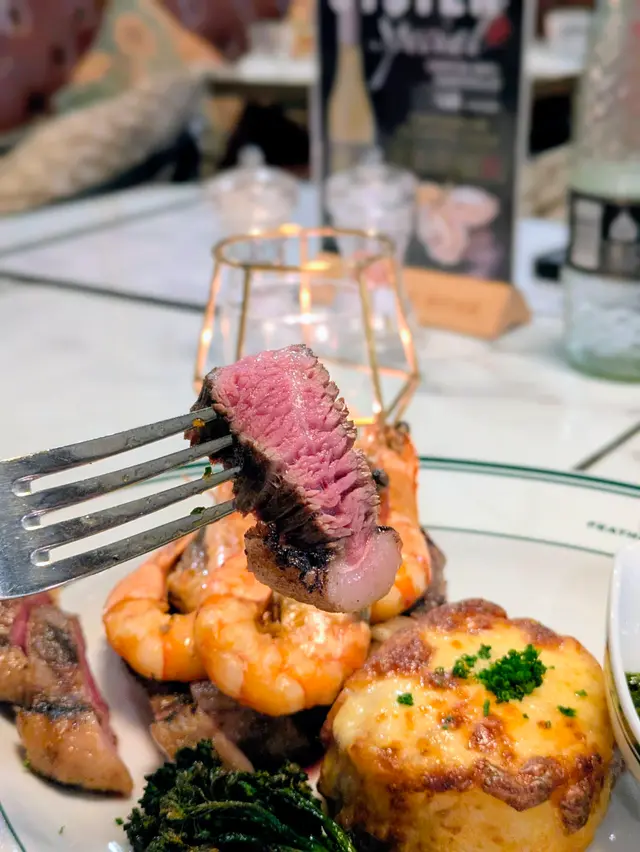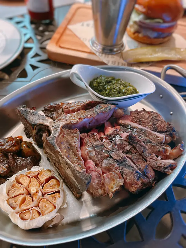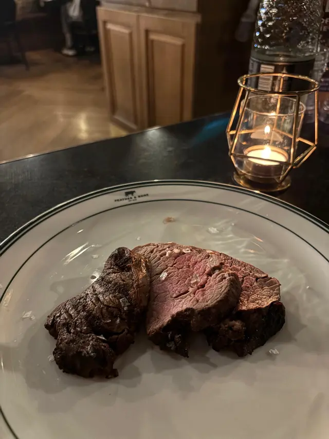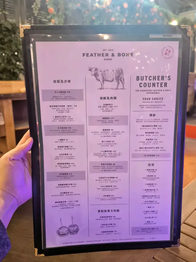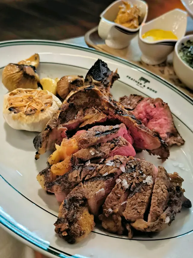 今次專登帶牛痴過嚟海之戀Feather & Bone,估唔到商場裏面藏住咁高質扒房!樓底高配復古皮梳化,開放式肉櫃望見原塊乾式熟成牛肉,零售區睇見全冰櫃各國靚牛、羊, 全部任君選擇! 那炭烤香飄過嚟已經流口水, 立即親自揀定心水肉扒,交俾廚房的師傅即場料理,成個過程似高級肉檔混合私房廚房,儀式感爆燈💫▪️ 靈魂前菜:Bone Marrow Starter烤到滋滋響嘅牛骨髓,用匙羹一刮——油潤膏狀質感撞脆多士,濃郁骨膠原感令人即刻忘卻卡路里▪️ 肉食主場雙拼:•Dray aged grain fed Ribeye Steak (0.24kg)親自揀嘅乾式熟成肋眼特別有感情!30日乾式熟成肉眼扒切開透出玫紅肌理,外層焦脆內裡柔嫩,FAB秘製牛油融化後滲出迷人香氣及口感•Lam Rack frenched cap off (0.2kg)法式修邊羊架鎖住肉汁,輕輕切開已經感受到彈性,淡粉紅色羊肉味道層次分明, 炭烤味極香, 簡單撒海鹽已經帶出草原氣息! ▪️ 瘋狂回購位:Chips配神級 Truffle mayo粗薯條炸到外脆內綿,重點係嗰碟mayo——松露香氣濃郁,薯條未食晒醬已見底逢星期二T Bone之夜已經mark實下次慶祝!下次坐室外, 望住海境及聖誕裝飾,終於明點解有人成日話「食肉都要有格調」🔥…查看更多