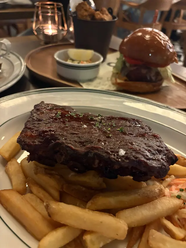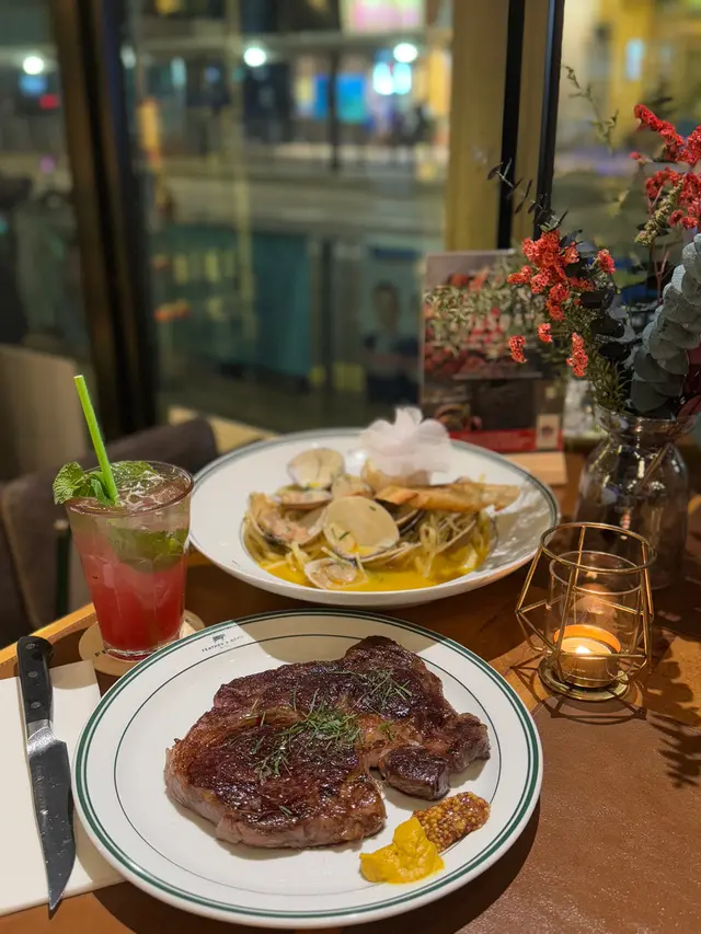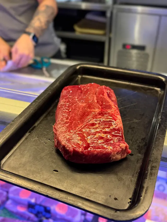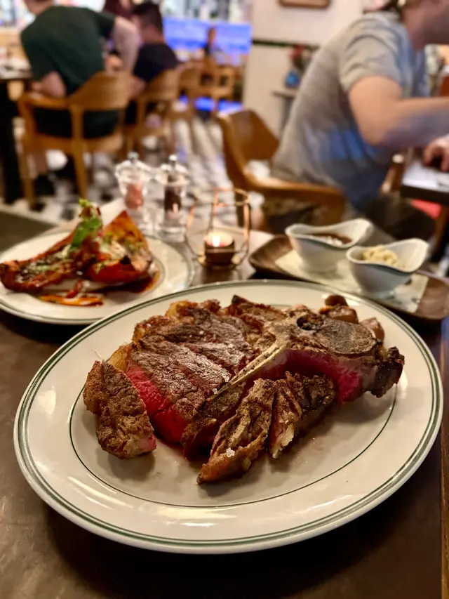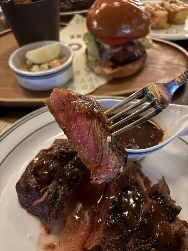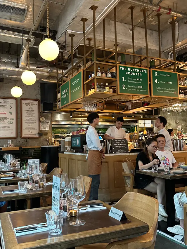 一向係牛魔皇,但屋企煮嘅機會唔大,所以鍾意出去食牛扒🥩朋友就帶咗我去西環一間英式餐廳,餐廳全部落地大玻璃,內裏樓底高挑,空間感十足,好有外國feel。餐廳除了係扒房外,佢地仲有係零售肉店和熟食雜貨店,佢地嘅肉類全部直接從澳洲農場進口,而且100%草飼,而除咗牛扒外,佢地仲出售香腸、烤肉、時令蔬果和酒類等,無論dine in 或者買肉在家烹飪都好適合💫,而且每日都有不同優惠,見到逢星期二T bone 有半價優惠,超抵食!下次約齊人星期二再來食先得!佢地肉櫃有不同款式的肉類出售,零售或堂食都可以,而且店員會好細心解答你的問題,一定揀到啱你心水的靚肉~🌟Gambad($148)先來個蒜蓉蝦成前菜,加入辣椒烹調的蒜蓉超惹味,個醬汁可以配埋酸種麵包,美味😋🌟M5 澳洲和牛肉眼($592)我們就到肉櫃裏挑選了自己愛吃的澳洲和牛肉眼, 因為是靚牛扒,所以我們只簡單的炭烤medium rare,也不另加任何醬汁,這樣才可以吃到牛的原味。M5 澳洲和牛肉眼,脂肪比例剛好,油花均勻,煎至medium rare 剛剛好,油脂香牛肉香滿滿,肉質嫩滑,入口極佳。🌟炭烤西蘭花苗|炸大啡菇條點了2個sides, 炭烤西蘭花爽脆清甜,而炸大啡菇條是必食推介,炸得乾爽不油膩,外脆內軟嫩,保持啡菇的juicy,配埋黑松露醬,超好味😋🌟飲品:Three Butchers |Mimosa 食牛肉當然要飲紅酒,點了南澳洲的three butchers, 用上Shiza 提子,味道帶黑加倫子味道,及少許煙熏味,配牛扒一流💫至於朋友則點了cocktails mimosa,清爽舒爽…查看更多