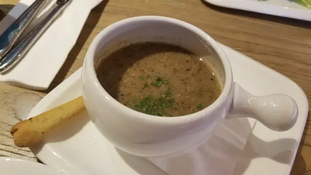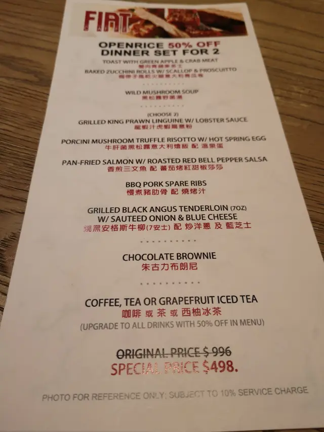 經OPENRICE訂座功能除咗儲分換禮物之外,仲可以有半價套餐選擇!有無咁著數先!我地4個人,見到個二人套餐內容都幾啱心水就叫一個,另外再單點少少嘢喇!二人套餐:正價HKD996,半價就係HKD4981.黑松露野菌湯(2客)~黑松露及野菌味濃,不錯2.蟹肉青蘋果多士(1客)~對蟹肉敏感,沒有試!3.焗帶子風乾火腿意大利青瓜卷(1客)~帶子有點腥,但SIZE唔細,配埋風乾火腿,咸咸的也不錯4.慢煮豬肋骨配燒烤汁(1客) ~唔覺係慢煮,豬肉黐牙,燒烤汁過濃,唯薯條香脆份量足5.燒黑安格斯牛柳(7安士)配炒洋蔥及藍士芝(1客) ~牛柳算淋,熟的程度亦係我地嘅要求,沒有over cooked6.布朗尼(2客)~自家製,口味ok亦足料一人餐(HKD178)1.沙律~這款沙律菜同枱沒人欣賞,是帶有點苦味吧!2.香蒜白酒大蜆意粉~蜆份量足,食得出有白酒味,但卻蓋過香蒜味單點:黑松露薯條(HKD68)~香脆份量足,黑松露醬亦討好…查看更多