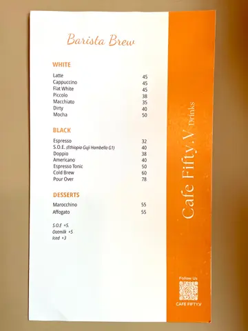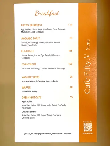 店名直接命名Fifty V 易記又易搵地方闊落三十個座位左右非常有空間感牆上5幅Cafe 主題掛畫好想帶回家🖼️橙 vs Beige 配色柔和帶點小清新🧡朝早8點就開始營業🕗有All Day, Sour Dough, 燕麥碗多款早餐供應🍞飲品方面意式以外抹茶, Smoothie, Mocktail都有🍹附近扮工一族不仿試吓👍🏻🔖 Egg Benedict Sour Dough 有先扒過軟熟有回彈力🍞菠菜厚厚一層、車厘茄亦鮮甜🍅流心Poached egg 生熟控制得宜🥚最驚喜係幾片意式肉腸Martadella 乾身仲保持香脆口感整體賣相同味道都有餐廳級數🔖 Latte 有款Ethi Guji SOE +$5 值得一試奶泡綿密拉花飲到底都無散開係近來比較得我心嘅一杯☕️有溫柔、笑容滿面暖男店員、加10分💕有Extreme, Oasis 聽加5分🎸…查看更多