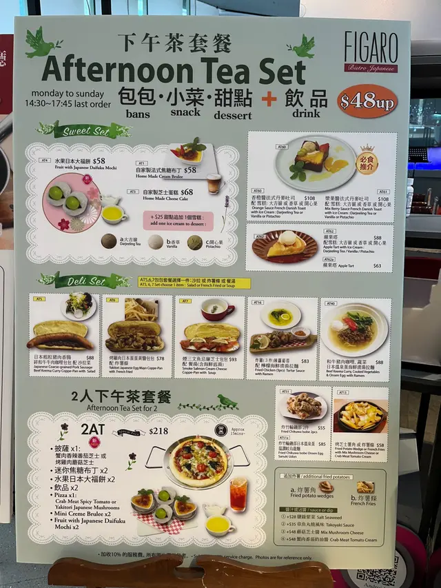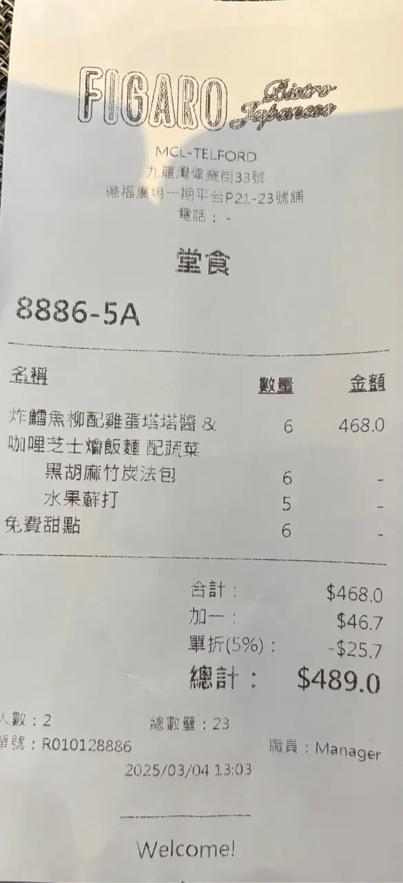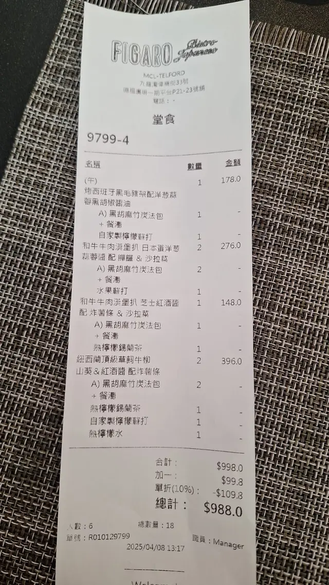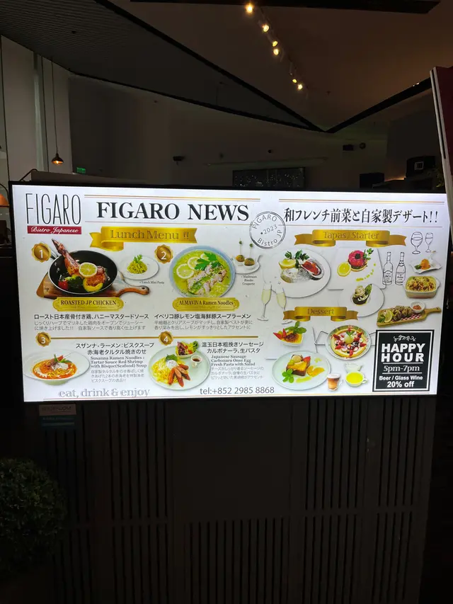 Figaro (九龍灣) 網上訂座即賺Rice Dollars 網址: https://s.openrice.com/QrbS0yMG5W0 地址: 香港九龍灣九龍灣偉業街33號德福花園平台MCL 德福戲院P21-23號舖 電話: +852 29858868