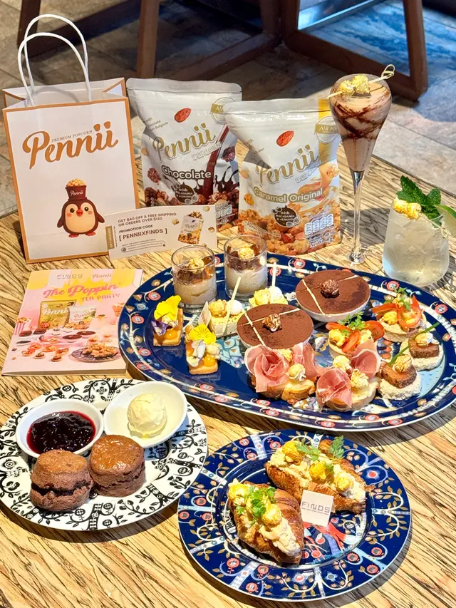 從小去睇戲爆谷必定會捧在手心上因為太好吃!近年也有不少爆谷品牌推出超多特色口味,不過爆谷始終是邪惡之物不能多吃!近來品嚐下午茶期間認識了一個泰國人氣爆谷品牌,味道和口感也很輕盈即時燒著了我。這天重臨位於尖沙咀帝樂文娜公館 FINDS,跟美女好友一起品嚐全新的Afternoon Tea。FINDS是間超型格的北歐餐廳於香港確是少有這風格好有特色。這趟我們來品嚐FINDS X 泰國人氣爆谷Pennii全新的The Poppin’ Tea Party下午茶。下午茶由四鹹四甜點加上英式鬆餅組合而成!件件也個頭十足份量絕不惹小特別之處以不同口味爆谷入饌,Pennii的爆谷以Air Pop熱空氣技術來取代油炸,炮製出無麩質、無添加及低糖的輕盈口感,將爆谷由魔鬼變成天使叫我心生期待。先享用爆谷限定特飲!Pistachio Silk$98以我喜歡的Vodka作基底,再混上GODIVA朱古力利口酒、百利甜酒及咖啡,濃郁朱古力及咖啡香氣加上酒香味道超香濃,另配襯上杜拜風朱古力開心果爆谷增添口感更加迷人,不喝酒有Coconut Breeze$68可以選擇,充斥泰式風味完美清爽可口,配以冬陰功爆谷口味趣怪。急不及待先來品嚐四款豐富的鹹點!輕煎三文魚配粟米慕絲!餐廳的優質三文魚好吃我從來沒懷疑,輕煎過之後仍然保持鮮嫩度,配搭香滑粟米慕絲跟香脆焦糖爆谷一起品嚐口感層次真的非常豐富。巴馬臣火腿菠蘿意式烤麵包!這個非常特別竟然大膽用上金枕頭榴槤爆谷來配搭風乾火腿,得出來的化學作用令我留下深刻的印象,再加上新鮮菠蘿作為亮點將點心完美融合味道超讚。車厘茄雞肉迷你撻!嫩滑的雞肉配搭酸甜車厘茄已經是味美,鹹香的芝士爆谷跟香脆撻底互相輝映,香甜可口吃得我滿心歡喜。北海甜蝦蟹肉牛角包!是充滿海洋氣息的一款點心,海鮮以泰式醬汁來示人藏身於酥香牛角包之中,再點綴以泰式冬陰功爆谷吃下酥脆香味震撼味蕾,從來未吃過這麼可愛的牛角包太喜歡喇。這個時間品嚐英式鬆餅然後再迎接特色甜品!這次我們得到的是朱古力口味的Scone,塗上皇后果醬及Clotted Cream來品嚐怪滿足。四款甜點亦已經整裝待發!款款都好吸引吃那一樣先好呢!粟米芝士蛋糕!將粟米融入了芝士蛋糕之中非常有創意,除了香滑之外更增添了不少口感,加上芝士爆谷的加持擦出不少火花。柚子芒果沙布列!柚子芒果的酸香非常醒胃,但竟然用金枕頭榴槤爆谷來配搭,膽識出眾帶來別有一番精彩風味。焦糖意式奶凍!順理成章配搭焦糖爆谷作首尾呼應,那嫩溜的焦糖奶凍和爽滑的咖啡啫喱完美配合,得出令人心心念念的好味道。Tiramisu!這個經典甜品餐廳做得頗出色,那輕柔的口感吃得非常舒暢,朱古力、咖啡跟酒香也平衡得恰到好處,連同香脆的朱古力爆谷一起品嚐非常享受。下午茶配有精選咖啡或特色茗茶NORDQVIST!我選上WÄINÖ雲莓草本茶,於北歐森林零下40度生長的雲莓維他命C超高,味道酸香配搭草本清新味道喝得很舒坦。享用下午茶的客人可即場獲贈Pennii Premium Popcorn禮品套裝!當中包括有Pennii Premium Popcorn/30g~40g 1份(隨機口味),Pennii Premium Popcorn$40購物禮券1張,不過禮品數量有限先到先得送完即止喔。 The Poppin’ Tea Party下午茶收費為$588/兩位、$338/位,由即日起至11月30日於下午3時至5時30分供應。…查看更多