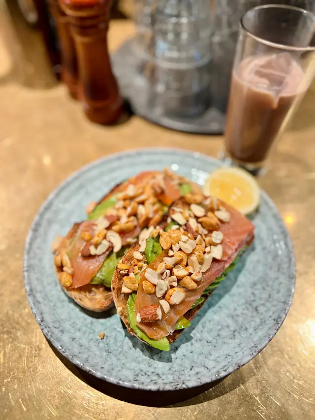下晝去咗去食下午茶冇service charge仲要可以坐好耐本身提前到,嗌咗杯嘢飲等咗個朋友一個鐘都冇店員趕你走如果一個人好想食下午茶,等朋友就好啱!- 嗌咗三個唔同味嘅Toast 最後飽到連晚餐都食唔落呢個質素同價錢嚟講好抵食因為都真係非常之唔易整整體嚟講佢嘅sourdough都係比較冇咁酸係非常chew and crunch個種食耐咗會有好香嘅麥香味-Smoke salmon toast 煙燻三文魚三文治配咗用辣椒炒過或者醃過嘅nuts 好好開胃 食嗰陣就會覺得好香口同埋佢好似搽咗啲芝士粉係個包面係好香嘅搭配 呢個一定冇錯-如果鍾意甜款嘅呢就可以嗌嗰個Blueberry嘅ricotta cheese toast好香奶味配honey甜甜地 脆脆地好好 好好食同埋佢藍莓真係超級甜嗰種完全唔酸-今次冇跟推薦嗌咗個half and half好啱素食嘅朋友仔,因為佢係得菜牛油果同埋蕃茄仔,不過對比就會好前面兩款就會好遜色如果想飽啲就可以嗌呢一款!因為蕃茄仔好甜 牛油果感覺好飽肚就會好滿足…查看更多