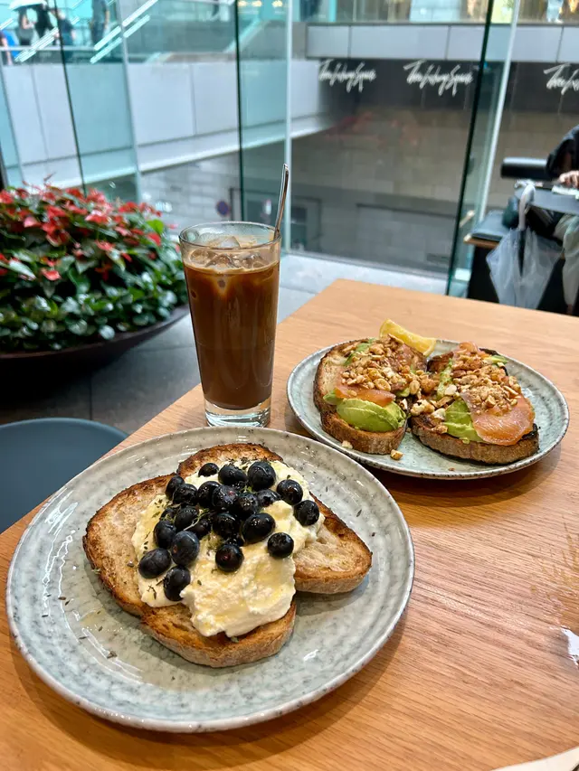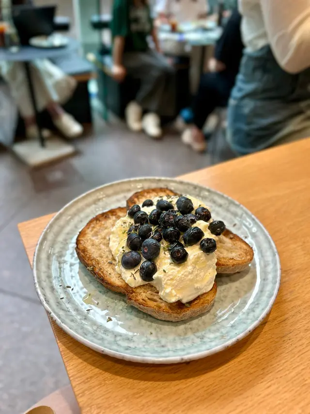 每次去襯fineprint都一定係order 我嘅comfort food ricotta toast!吐司用上自家製酸種麵包,烘到金黃色,外皮酥脆,內裡則保持著柔軟的口感,每次食都覺得很滿足!Ricotta cheese的搭配非常出色,清新的口感與淡淡的奶味,讓整體味道更加層次分明。而新鮮的藍莓則增添了自然的甜味。此外,我有事會order honey on the side ,這樣可以根據自己的喜好調整味道。 面頭嘅thyme亦是神來之筆,讓整份吐司嘅味道升華!咖啡就偏向fruity風味,喜不喜歡就見仁見智啦!…查看更多