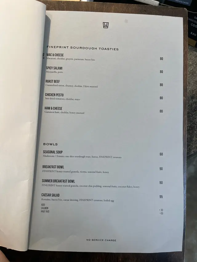 今日得閒去咗 Fineprint 歎個 brunch。見佢哋個 Ricotta Toast咁多人讚,咪諗住試吓,點知一試就愛上!首先講吓個 Ricotta Toast,ricotta好香好 creamy,上面有honey同thyme去調味,仲配埋啲藍莓嘅酸味,平衡得啱啱好!完全感受到佢哋自家製 ricotta 嘅用心,好有層次感。至於 Mac & Cheese Toasties,係新菜式,sourdough 烘到牛油味好香,仲有 cheddar 同 gruyere 兩隻芝士,真係 perfect match!最後個 Breakfast Bowl,個賣相好靚,homemade granola上面鋪滿晒咗士多啤梨、香蕉、藍莓,仲有ricotta打底。食落幾有口感,好開胃,做早餐一流!…查看更多