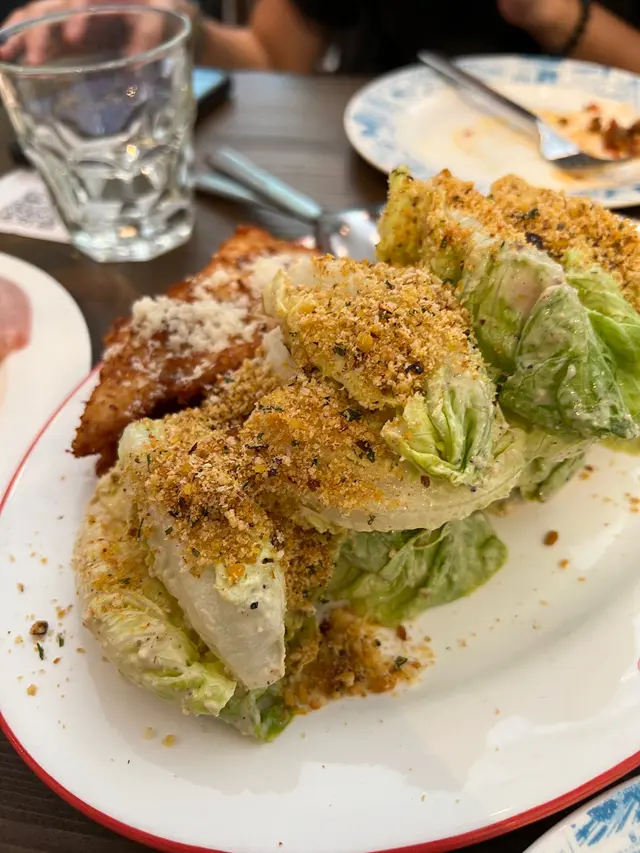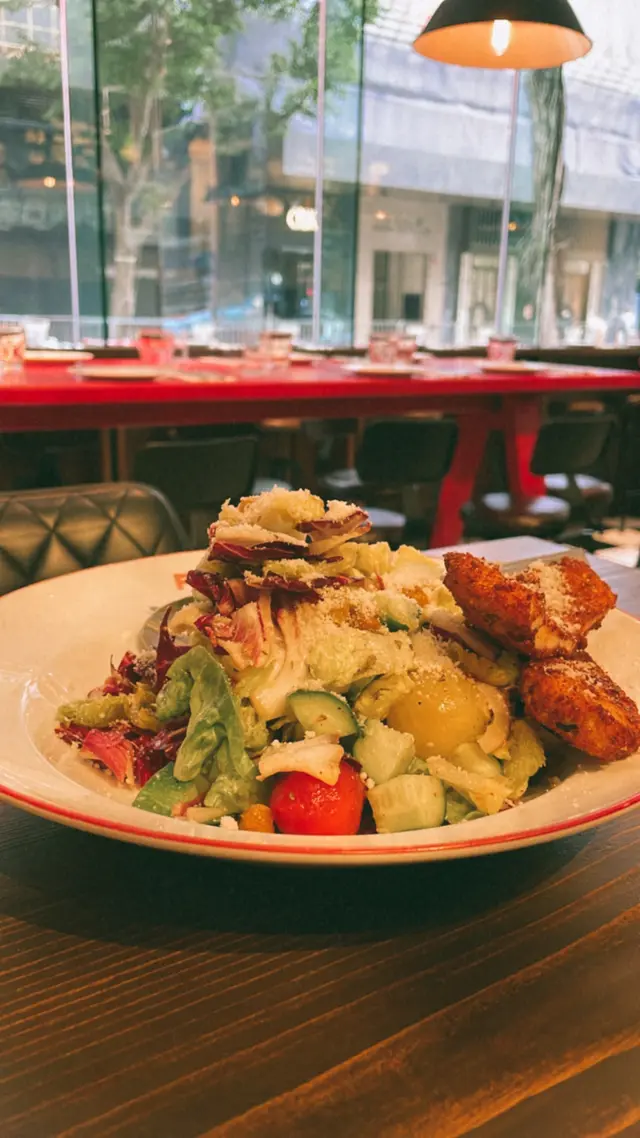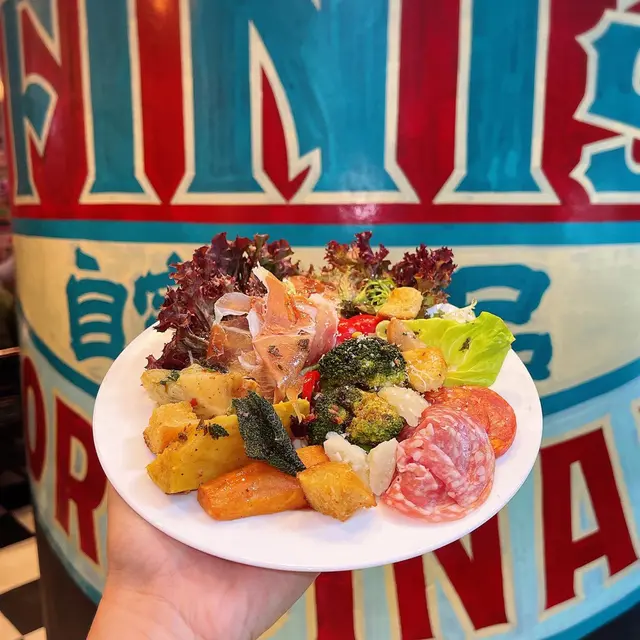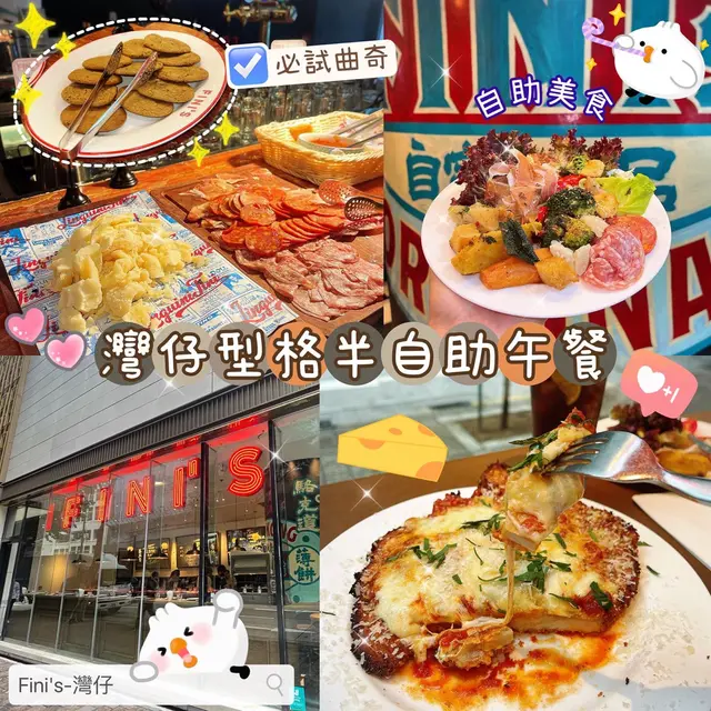 🍽 灣仔型格半自助午餐✨ 難得外出到灣仔工作,早一晚搜尋了幾間灣仔區的餐廳,最後決定一試Fini's的Semi buffet。由於是一人光顧,餐廳職員安排了筆者到靠窗位置, BAR檯可望著街景進食,感覺特別 Chill,但久坐高椅,還是會有點累。客人可自行scan QR code點餐,餐廳職員十分友善,入座不久主動詢問筆者 “Any idea for order? “ 擔心筆者第一次光顧毫無頭緒。此時筆者已下單,開心的向店員表示自己要出動取食物了。Antipasti Buffet $139Chicken Parm +$40Coke Zero +$10如只吃自助區食物只需 $139,自助區有兩款Salami 和一款Parma Ham,另外有沙律菜、芝士,洋蔥,甜薯、南瓜、西蘭花,及沙律配料,有車厘茄,橄欖,麵包粒等。最讓人感到開心的甜品是大片狀的朱古力曲奇和西瓜。個人比較喜歡朱古力曲奇,內藏軟心朱古力醬,香甜美味,是必試單品。擔心不夠飽的還可以選擇加購主菜肉類或意粉。筆者加了一款主菜Chicken Parm,帕瑪森雞排是意大利一道經典菜式,雞胸混入麵包糠和帕瑪森芝士,再配意式茄醬。雞排上桌時,面層鋪上熱得仍在冒泡的芝士,雞排大得比筆者的臉還要大。內心暗喜立即切一塊雞肉試試,「渣渣」聲從餐刀觸踫時傳出,外層香脆,內裡充滿肉汁 ;再來一個拉絲芝士把雞肉卷上,配上茄醬同吃,美味豐腴,叫人歡喜。哈哈…大家謹記要襯熱進食,否則還是會有一點膩喔!🔸小總結:餐廳距離灣仔/會展港鐵站有一段距離,大概需要5-10分鐘。午餐自助的款式頗豐富,而且味道都不錯。裝修帶型格的中西合壁風格,且紅白藍色調充滿視覺效果。性價比方面則算一般,午餐連加一後$208埋單,如細食的女生可能會感到不太划算,但以食物質素及服務來說,總體算值回票價。👅味道:4.6/5💰CP值:4/5🕴🏻服務:4.8/5🔰餐廳環境:4.8/5🍽 餐廳:Fini's🌐地址:灣仔駱克道33號美國萬通大廈地舖🐮 #cowing吃在灣仔#foodie #hkfoodie #hongkongfoodie #852food #852foodie #foodstagram #灣仔美食 #相機食先 #吃貨 #食好西 #finis…查看更多